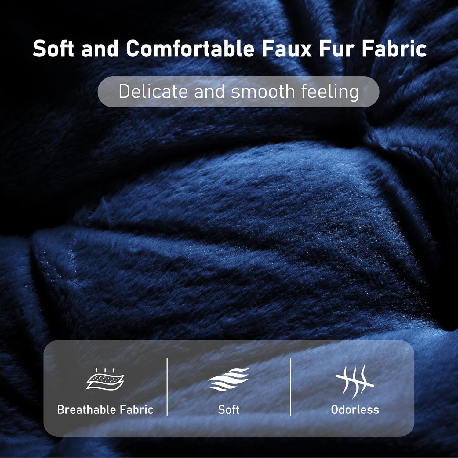 - Comfortable as Clouds: Our living room chair is made of exquisite anti slip faux fur fabric, which is comfortable, skin friendly,breathable and odorless.The inclined backrest fully fits your back curve, allowing you to enjoy relaxation. In addition, the full PP cotton inside the seat provides good support for your thighs, knees and head.This ergonomic cozy chair has a spacious seat with a unfolded size of 32.2"D × 27.5" W × 33"H, making it easy for you to stretch your body freely