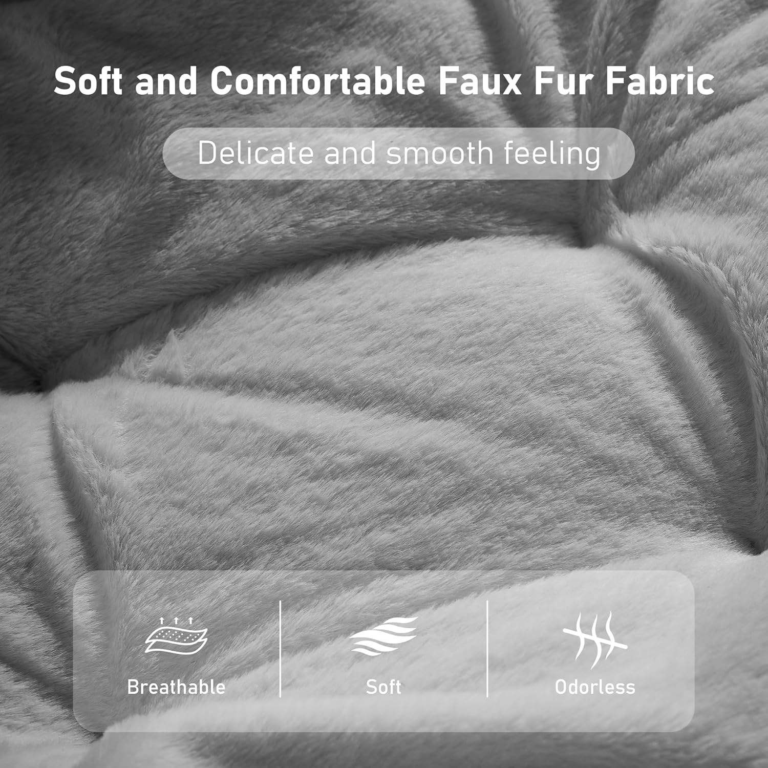 - Comfortable as Clouds: Our living room chair is made of exquisite anti slip faux fur fabric, which is comfortable, skin friendly,breathable and odorless.The inclined backrest fully fits your back curve, allowing you to enjoy relaxation. In addition, the full PP cotton inside the seat provides good support for your thighs, knees and head.This ergonomic cozy chair with ottoman has a spacious seat with a unfolded size of 32.2"D × 27.5" W × 33"H, making it easy for you to stretch your body freely