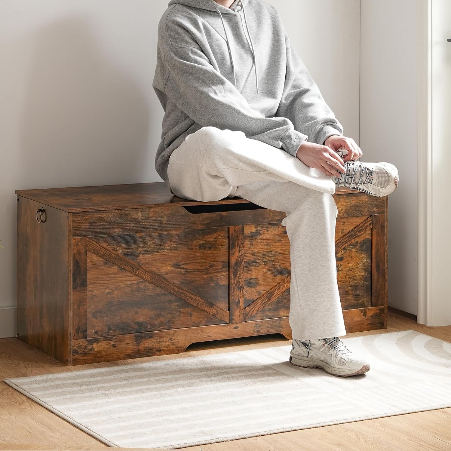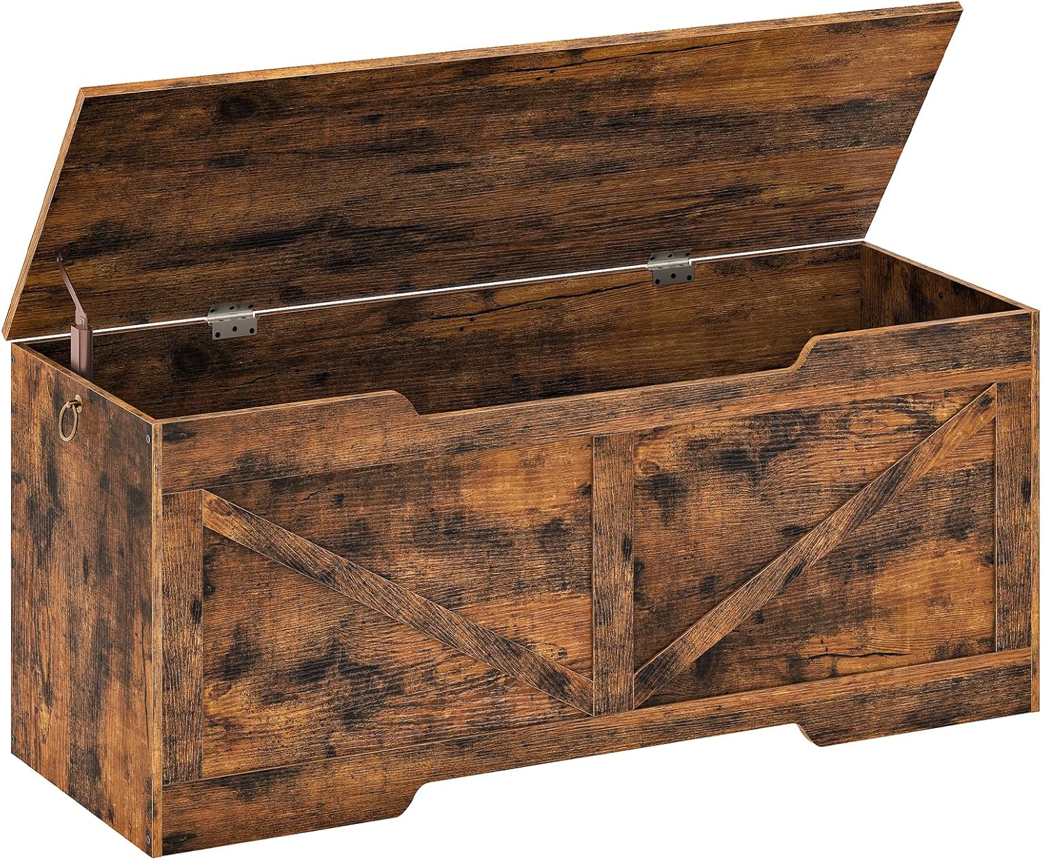 HOOBRO 47.2” Storage Chest, Retro Wooden Storage Bench with U-Shaped Cut-Out Pull, Toy Chest with Safety Hinge, Supports 220 lb and Easy Assembly for Toy Box Organizer (Rustic Brown) BF773CW01