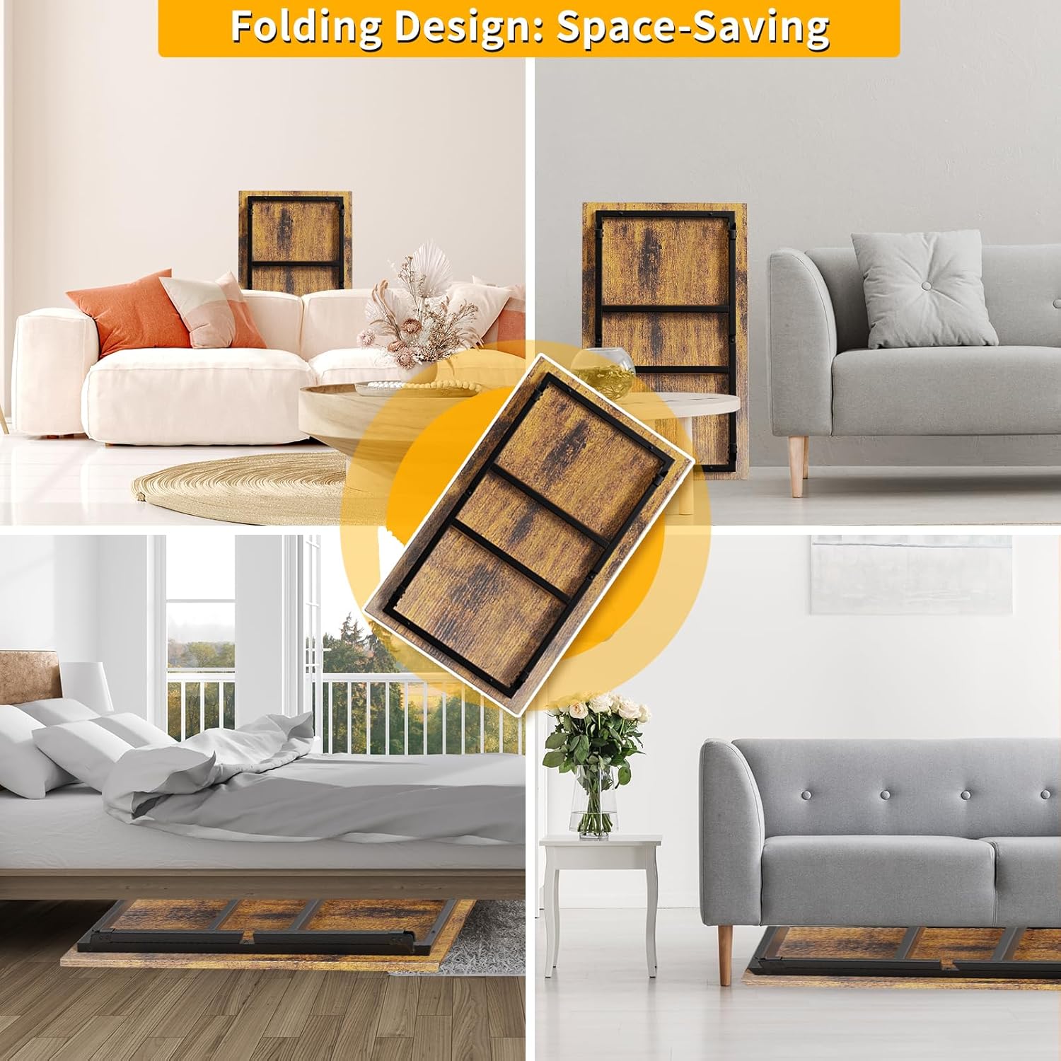 - 【Space-Saving Tea Table】 This small coffee table for small spaces (39.37’’ x 23.62’’ x 15.75’’) doesn't take up much space. You could use when you need it and put away when you didn't. This table fills the bill. After being folded, it could be placed under the sofa / bed, against the wall, etc. This small coffee table for living room is a hassle-free addition to your home