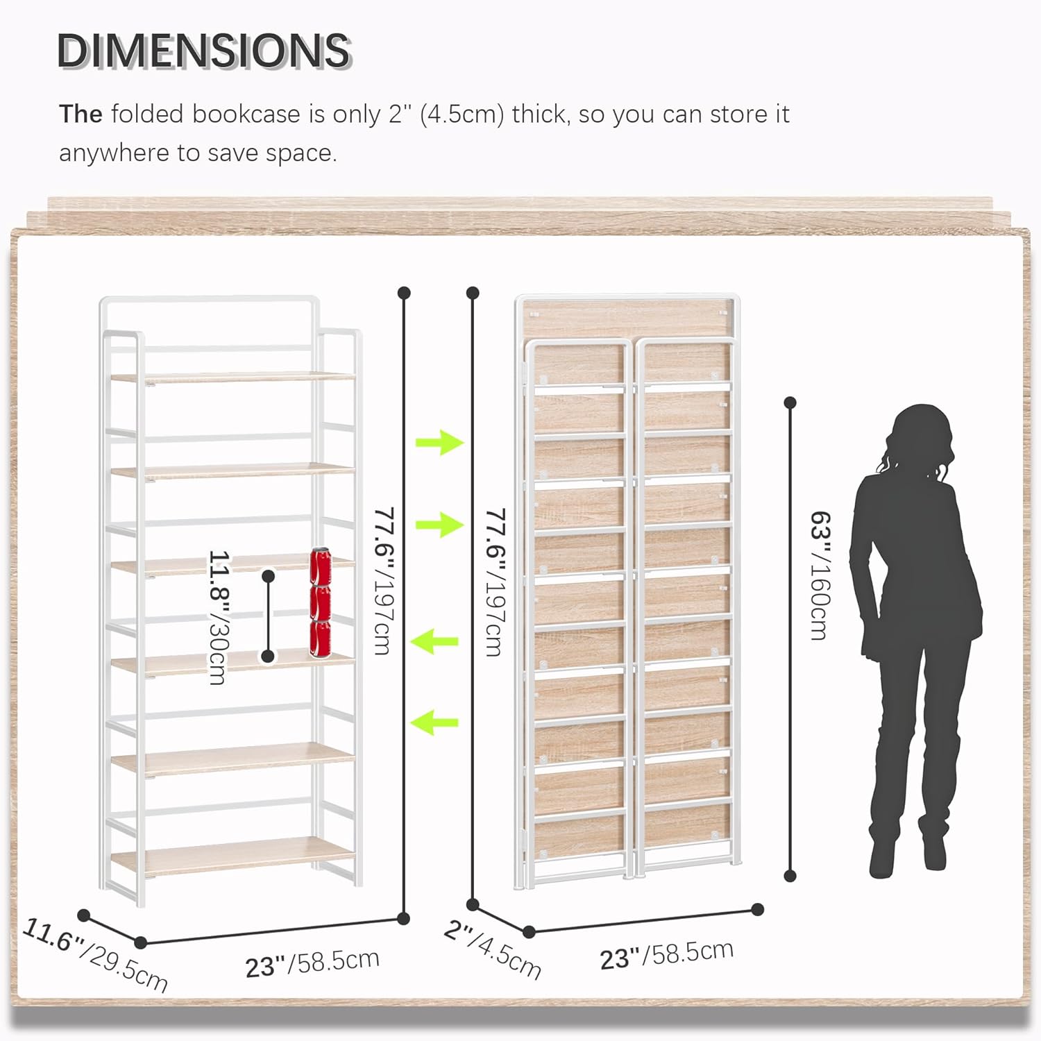 - 【Storage Shelf Folding Sized】23x2x78.1 inches (58.5x4.5x198.5cm)