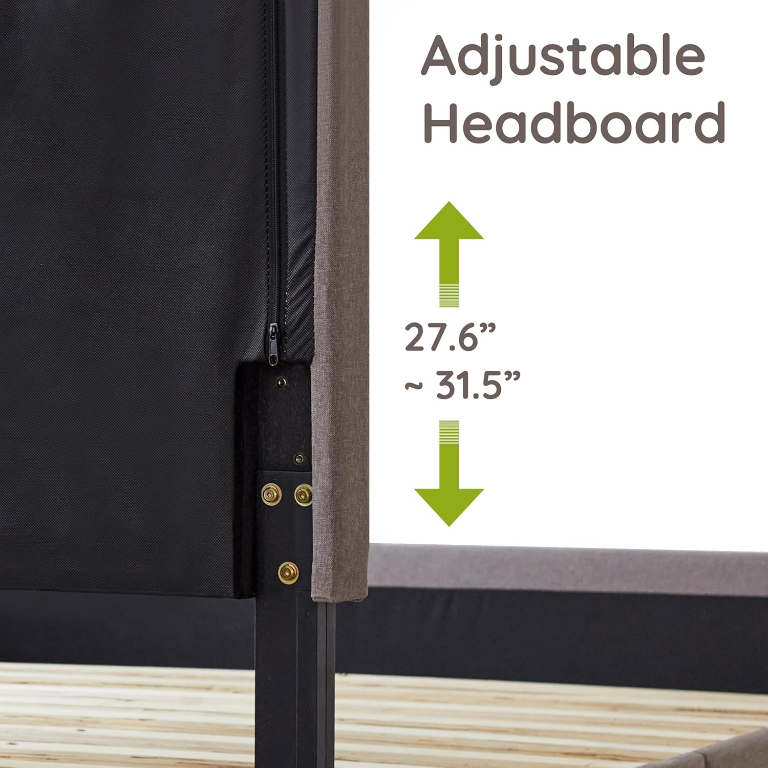 Livinia Amelia Full Size Platform Bed, Fabric Upholstered Full Bed Frame with Height Adjustable Headboard Footboard, Strong Wood Slats, No Box Spring Needed, Brown