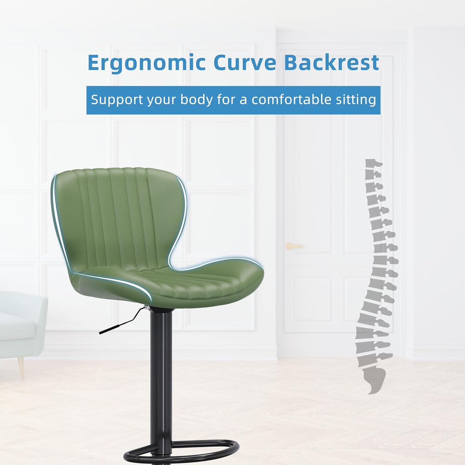 Shintenchi Bar Stools Set of 4 Modern Swivel Bar Chairs, Counter Height Faux Leather Metal Barstools, Upholstered Island Chairs with Back and Footrest, Green