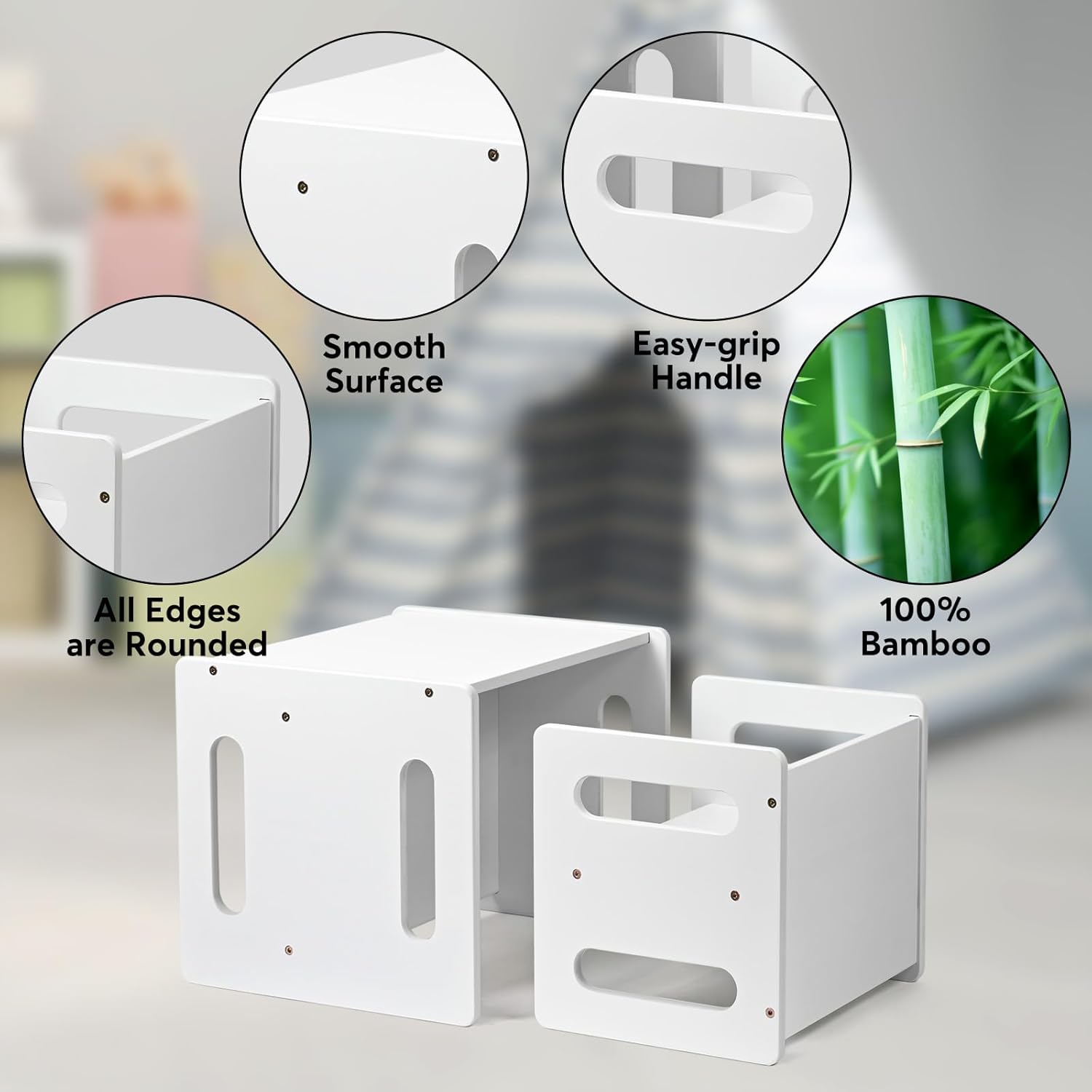 Kids Table and Chair Set,Montessori Weaning Table and Chair,Natural Bamboo Small Desk Chair,Toddler Activity Table and Chair Set for 1-3 Year Old Kids Dinner,Reading,Playing Toys,CPC Certified, White