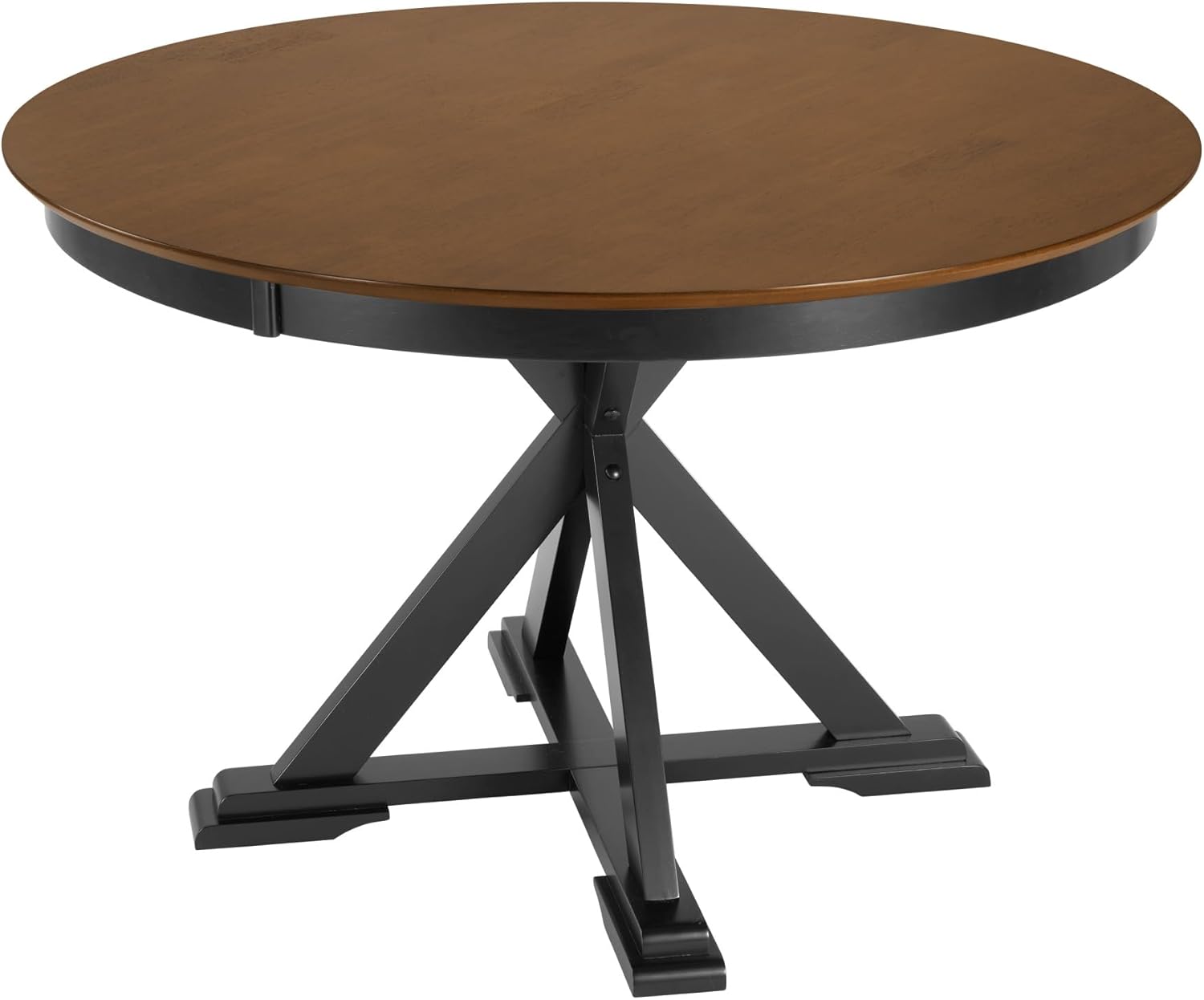 Bush Furniture Round Dining Table, 45 inch Trestle Design, Modern Transitional, West End Collection, Dark Brown and Black