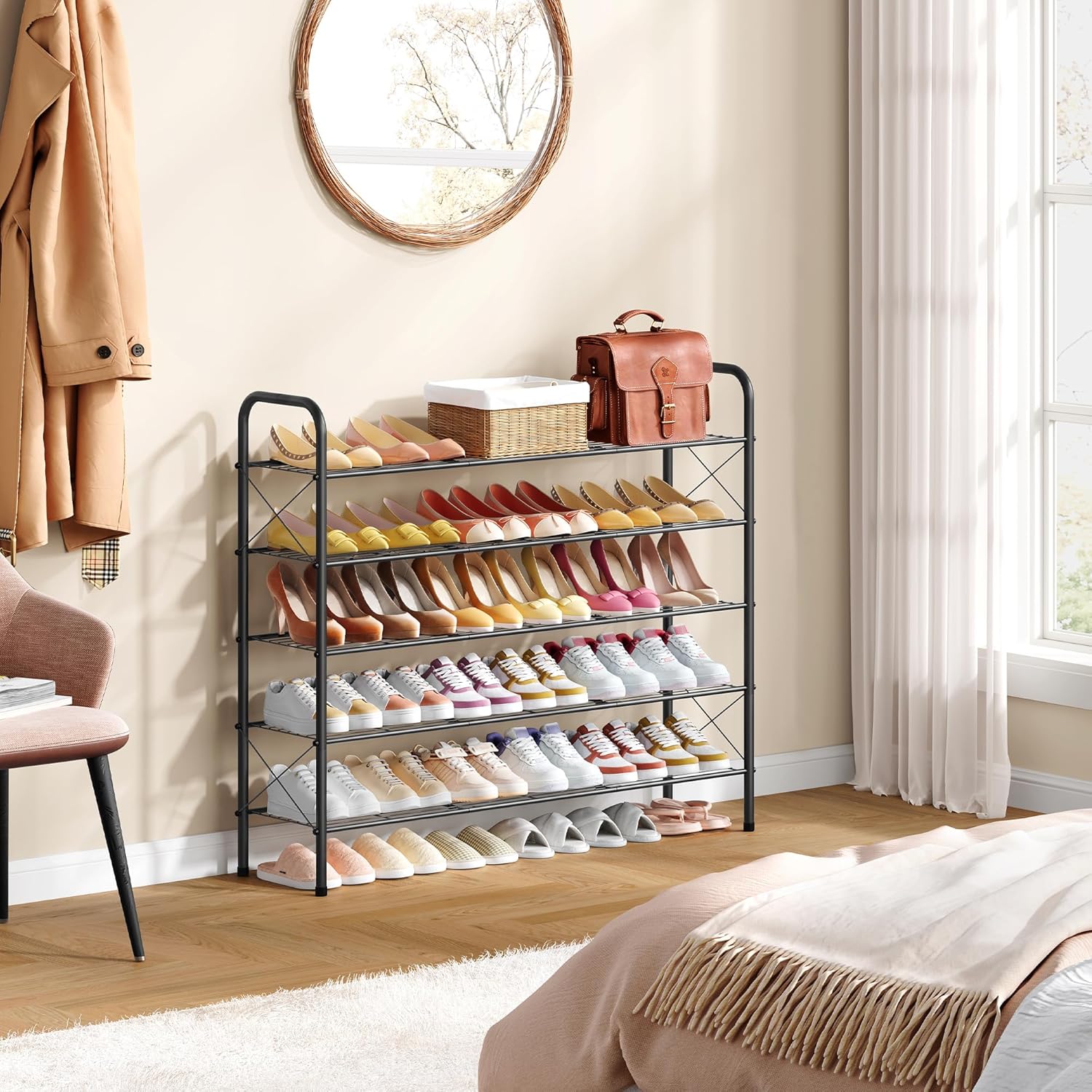 Hoctieon 5 Tier Mesh Style Shoe Rack, Entryway Shoe Shelf, Shoe Storage Organizer, Shoe Rack for Closet, Space Save for Bathroom, Garage, Hallway, Bedroom, Living Room, Black