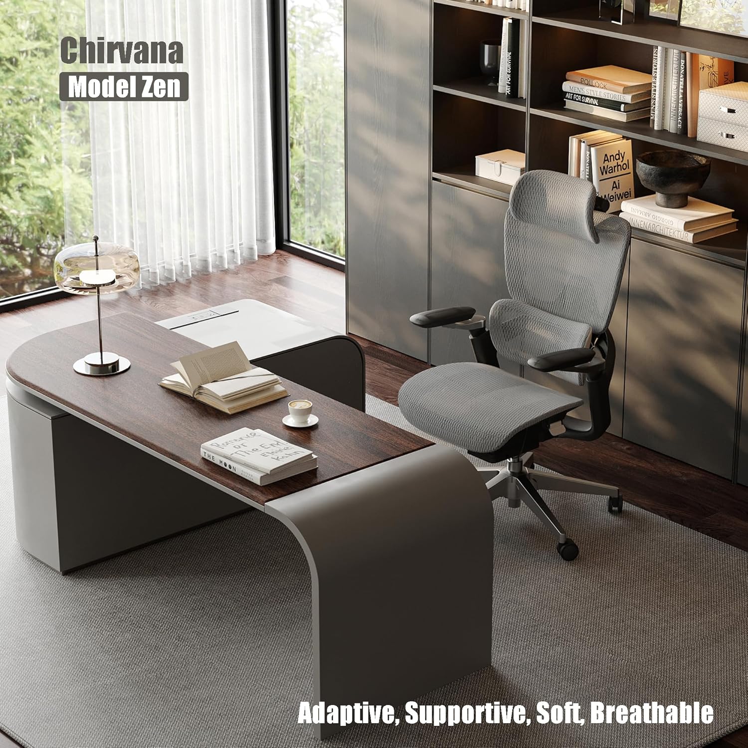 Ergonomic Office Chair, Big and Tall Mesh Home Office Desk Chair with Adjustable Lumbar Support, Gaming Chair with Headrest, 5D Armrest,90-130°Tilt, BIFMA Certified, Model Zen (Grey)