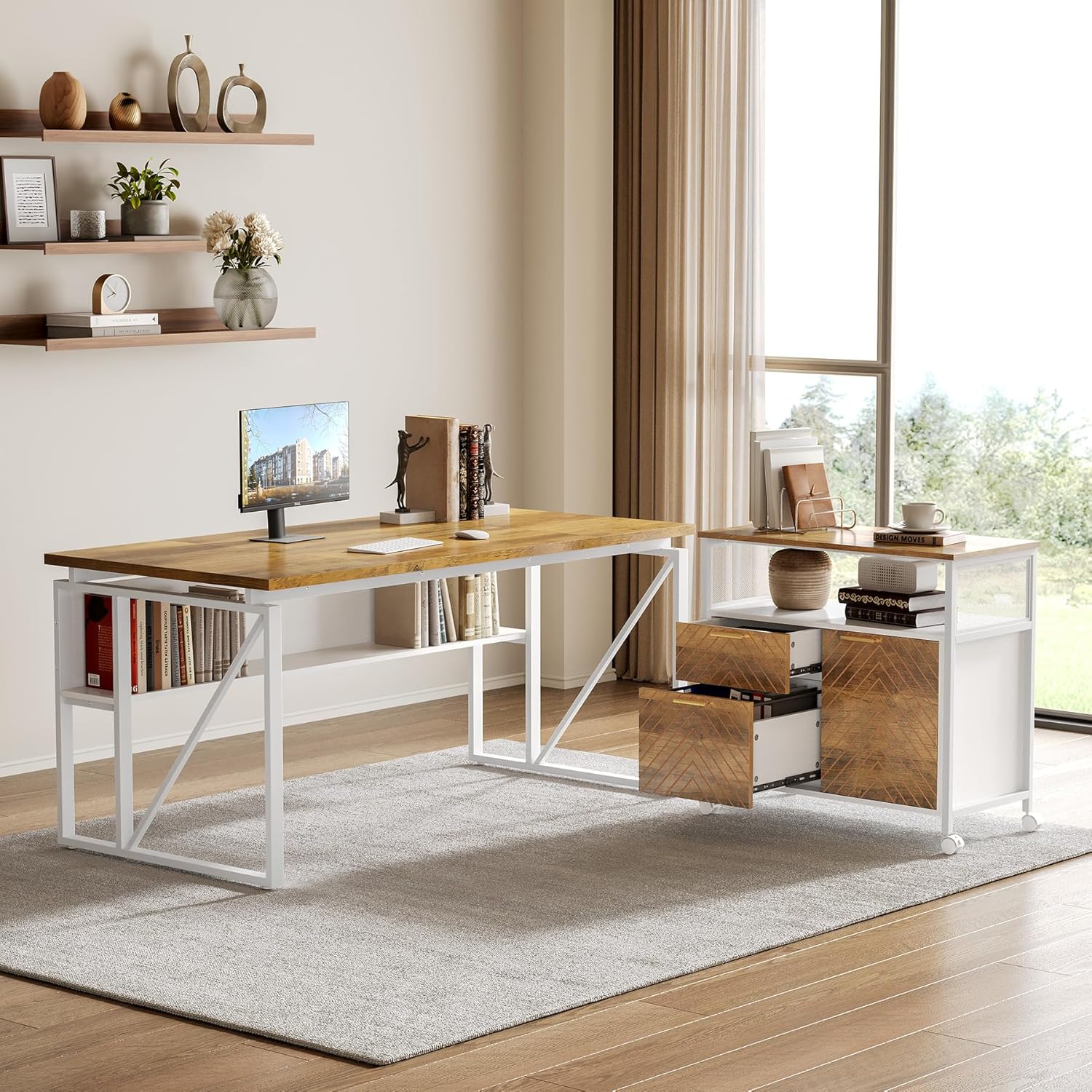 LITTLE TREE 63-Inch Office Desk with 31.5-Inch Lateral File Cabinet, Study Writing Desk Computer Desk for Home Office