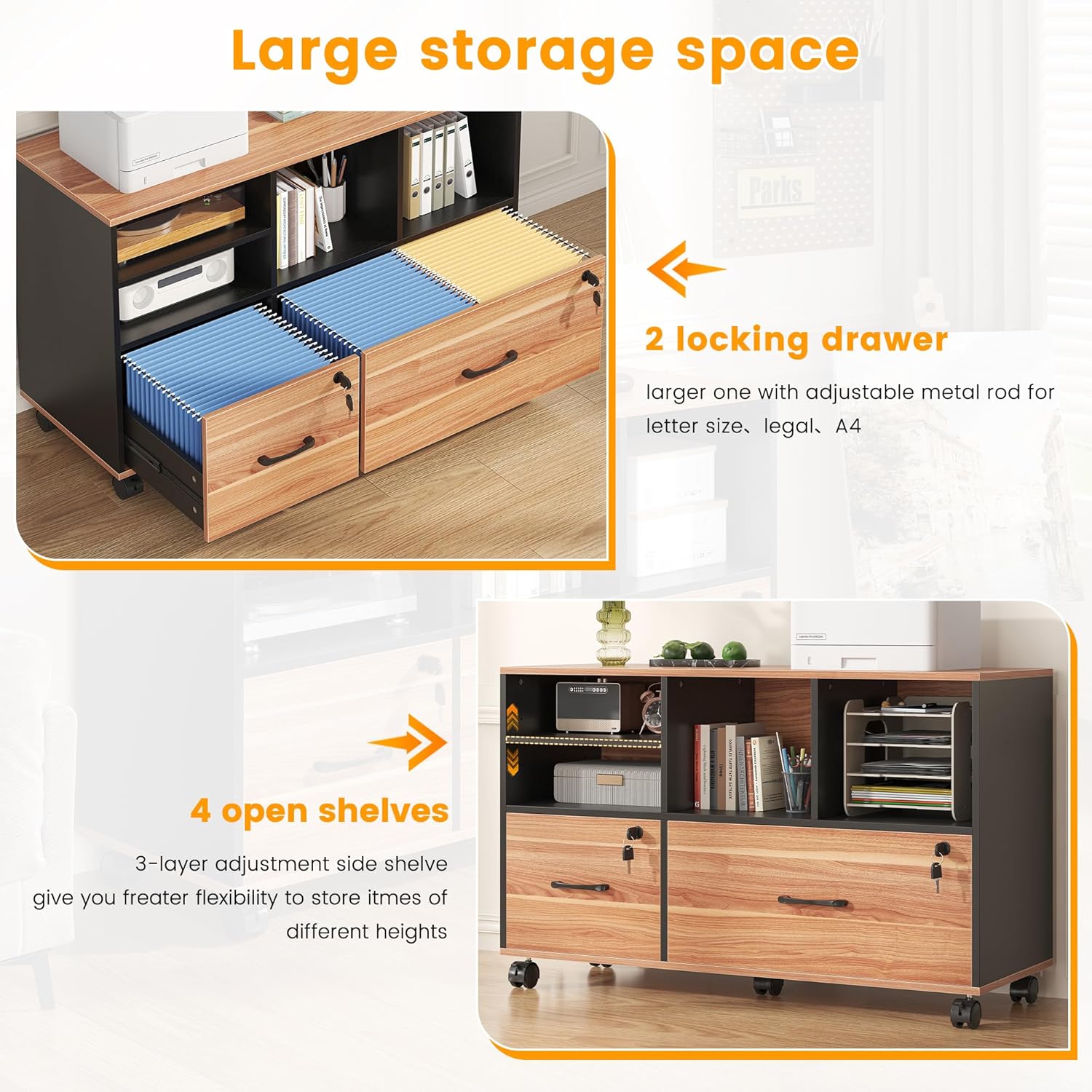 - Lockable & Movable: Both drawers of this filing cabinets for home office are equipped with locks so you can important documents. Plus, this lateral file cabinet is equipped with 2 lockable casters, which means you can move it wherever you like