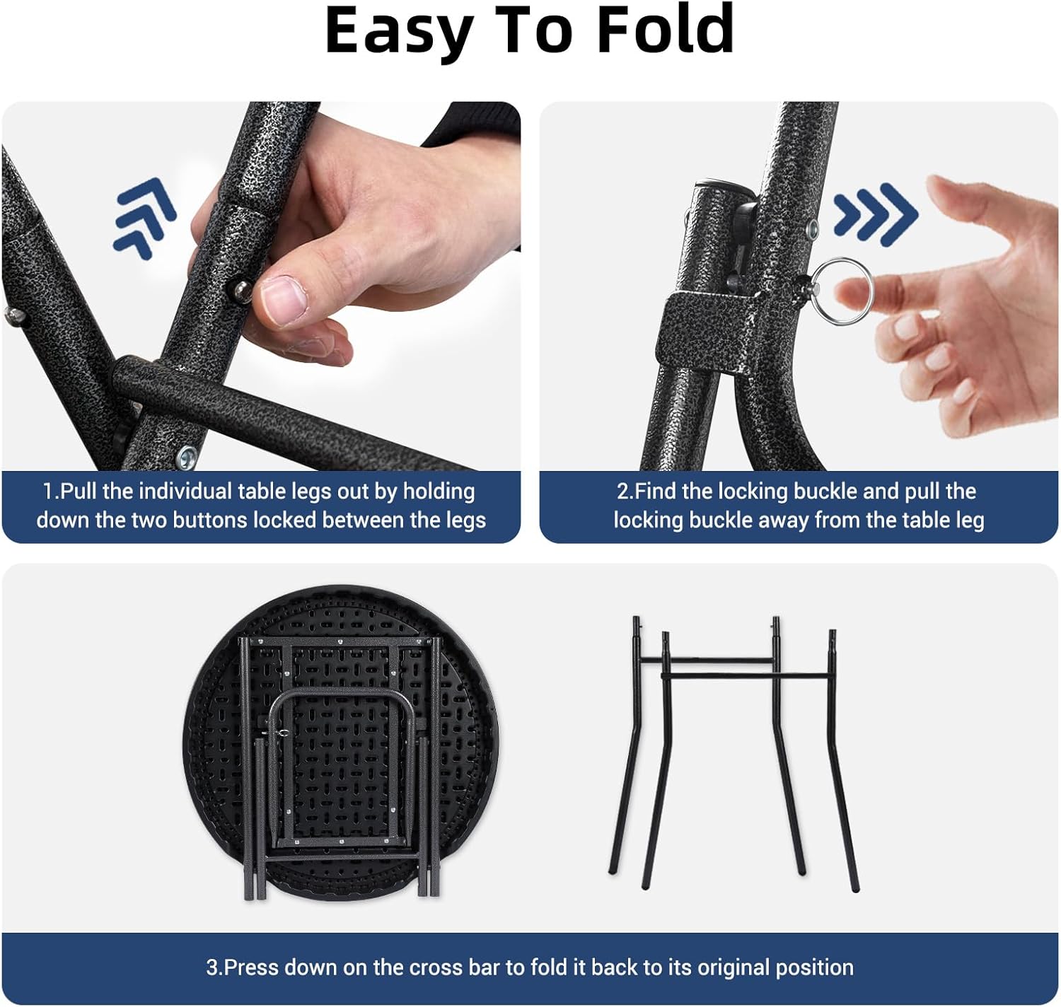 Cocktail Table 28in High Top Round Folding Indoor Outdoor, Plastic Bar Height Foldable Bistro Tall Table for Party, Patio, Dining Room, Kitchen, Events, Removable Locking Legs, Black