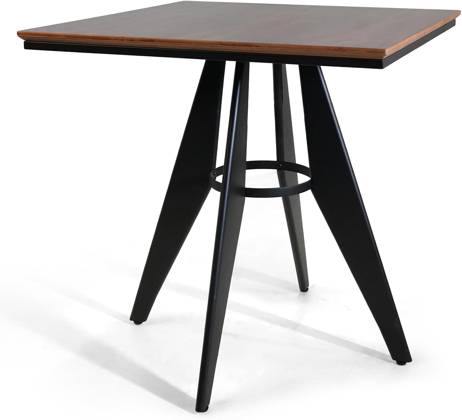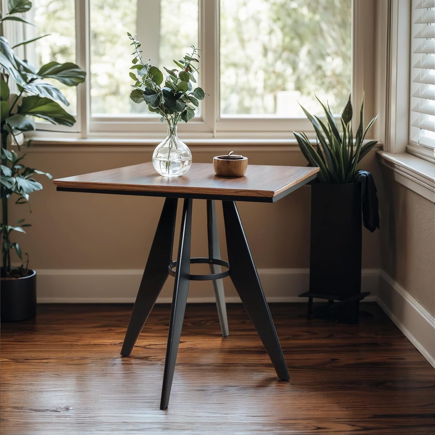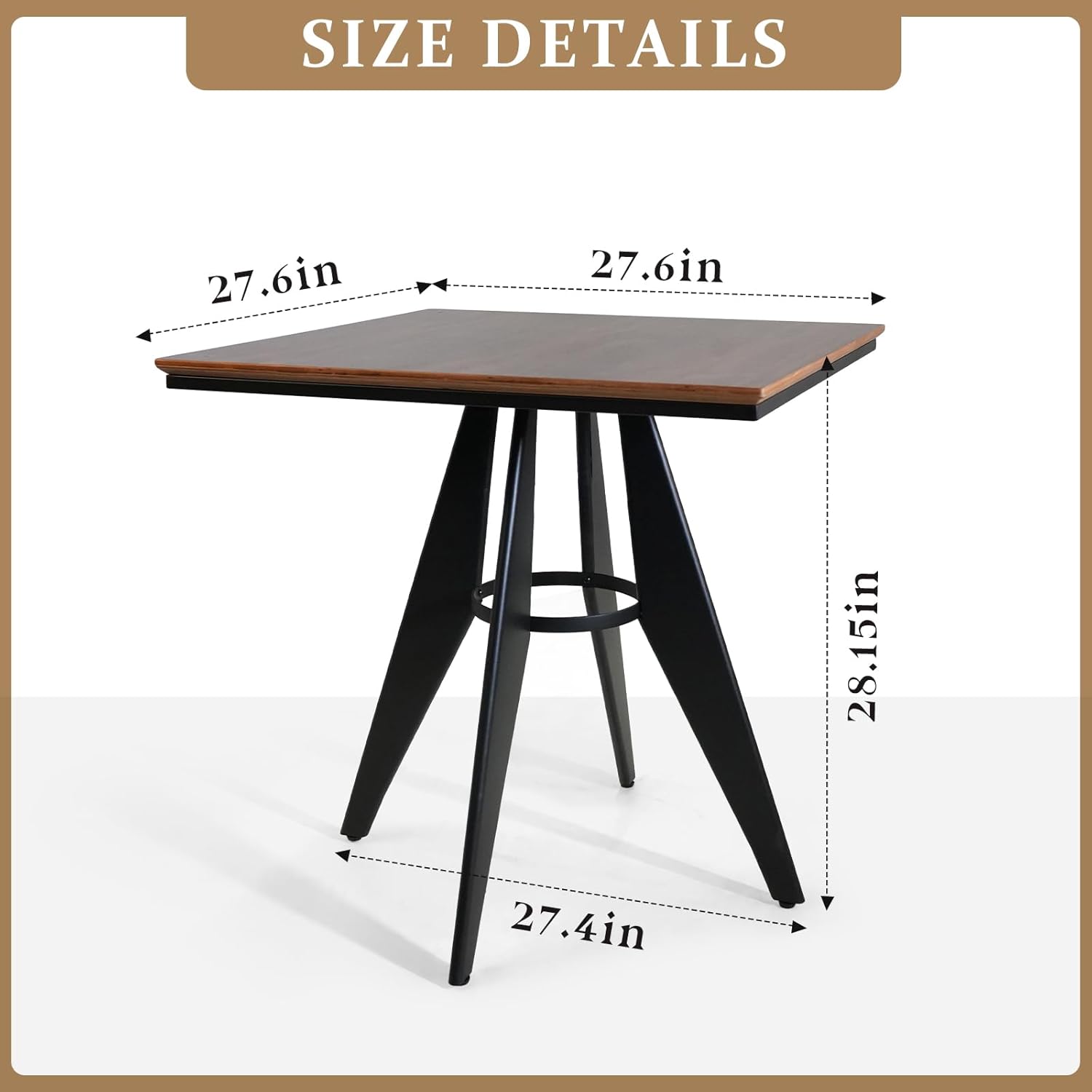 Square Cafe Table - 27.6" Oak Wood Top, Metal Frame, 28.15" High, Modern Industrial Dining Table for Kitchen, Home Office, Bistro, Compact for Space Saving