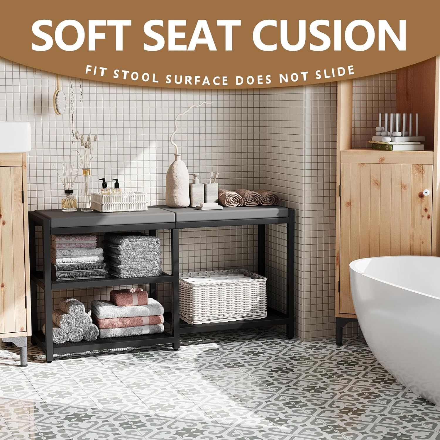 - Strong Support: This shoe rack bench is built with a robust powder-coated steel frame, offering firm and reliable support. Say goodbye to hard, stone-like stools and try our comfortable Small Shoe Bench! It not only provides durability but also has a maximum static load of 300 lb, making it a strong seating option for your needs.