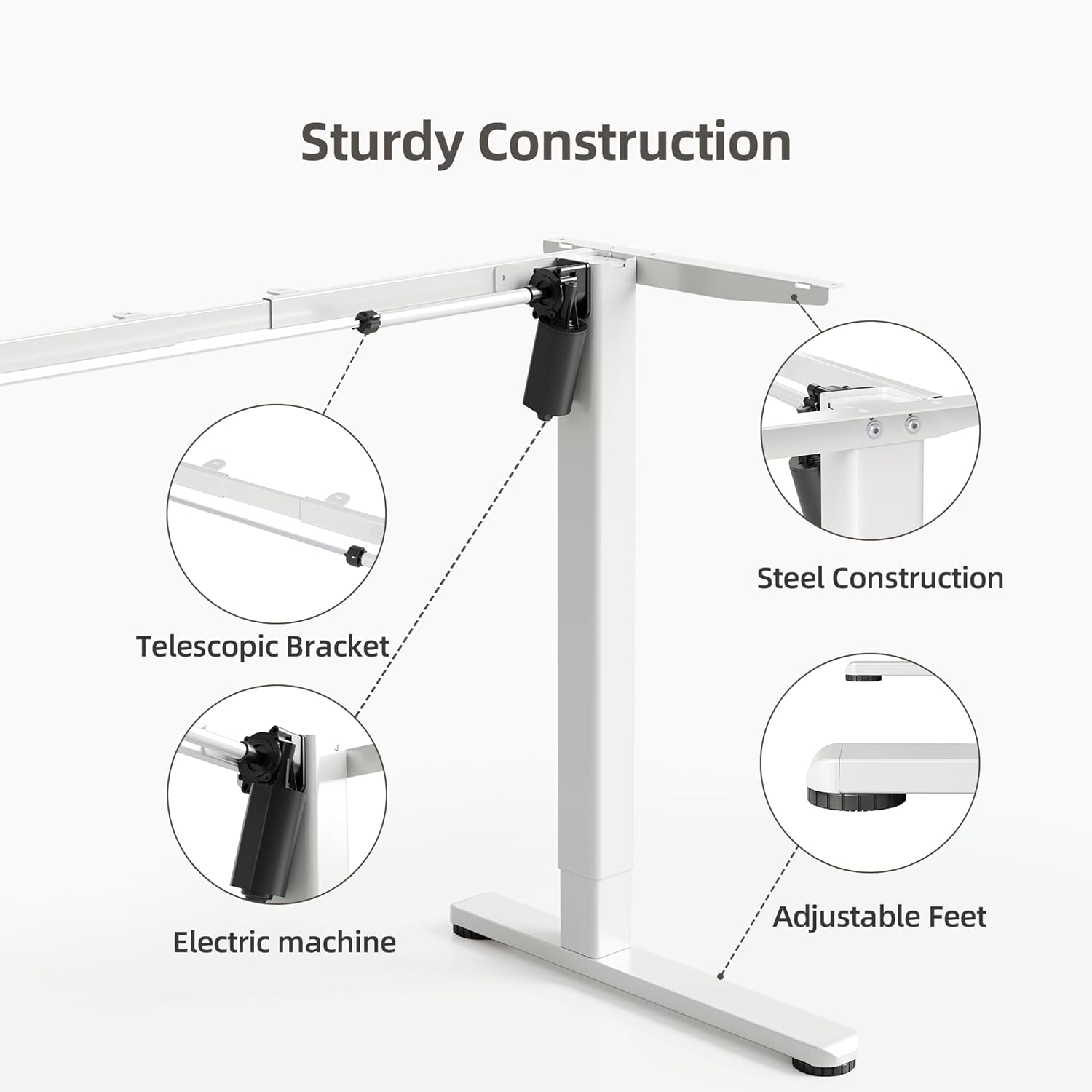 Claiks Standing Desk Frame, Electric Stand Up Desk Legs Frame Workstation Up to 63",C-Shaped Adjustable Standing Computer Desk for Home and Office, (White Frame only)