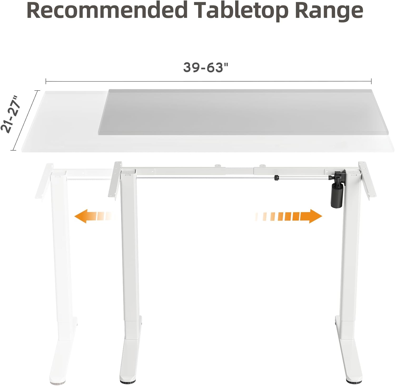 - Compatibility Desktop: Recommended Desk Top Sizes - Length of 40" to 63", Width of 16" to 27.5", and a Thickness of 0.59" and greater (Actual Frame Length: 37.4” to 53.5”).