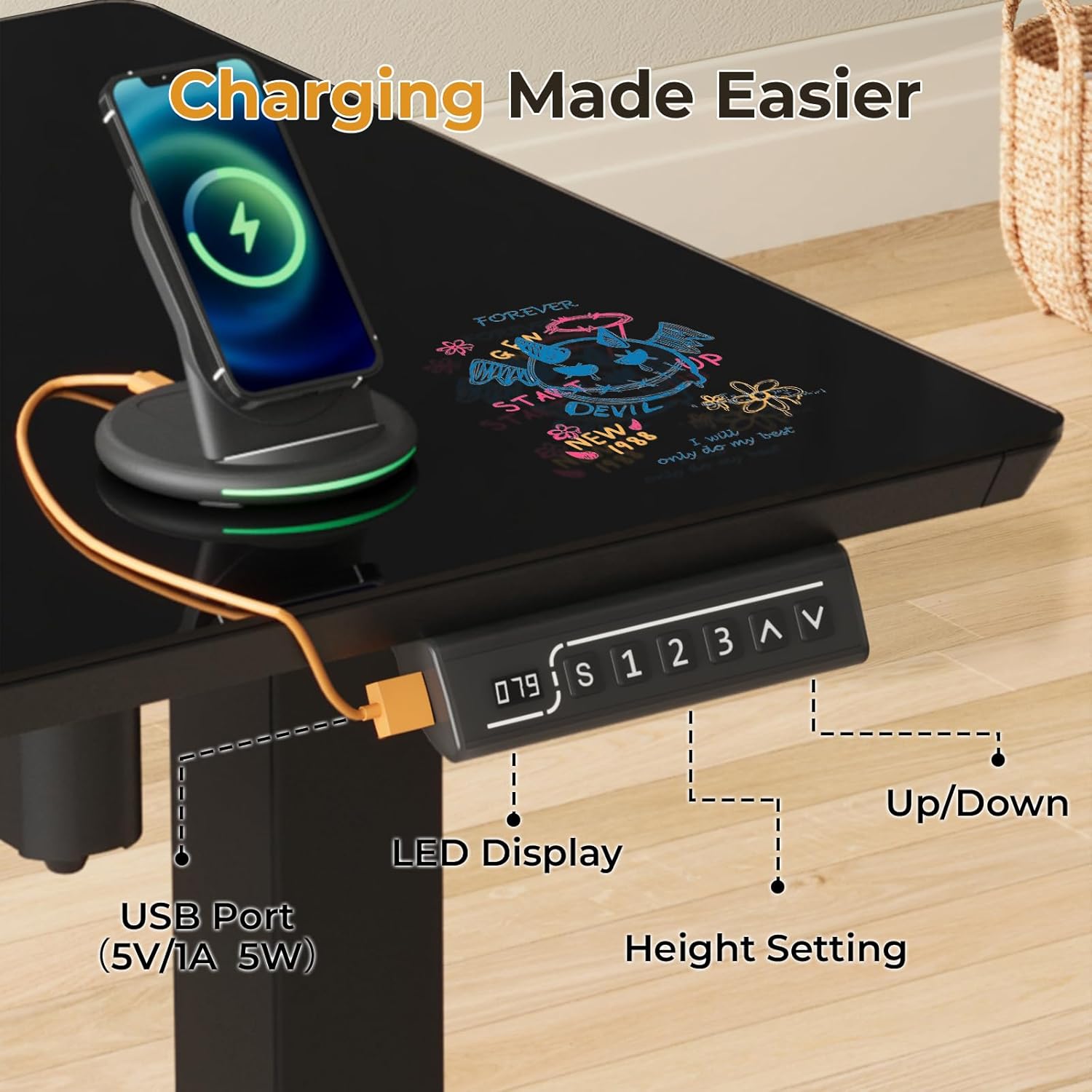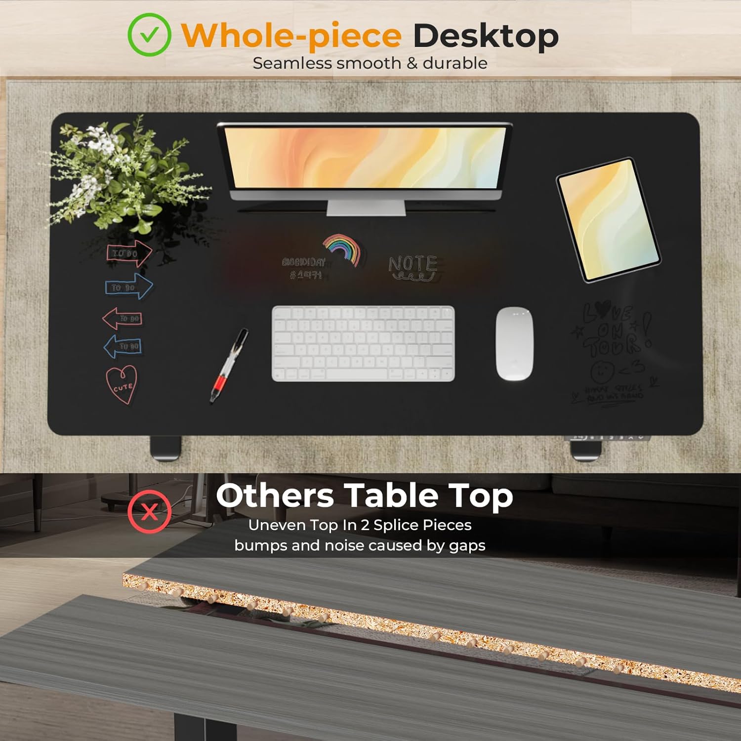 - Durable Glass Tabletop - The tempered glass desktop adds elegance and durability to the electric standing desk. Write or doodle on it with dry erase markers, then simply wipe clean to start fresh. More scratch resistant than wood boards