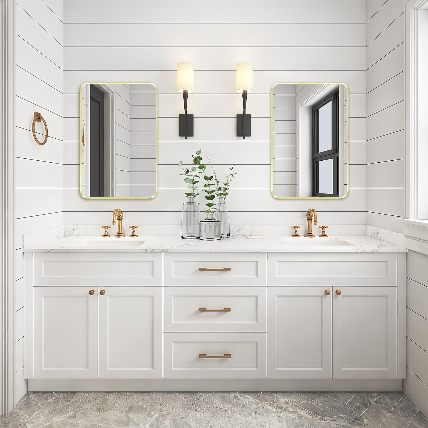 - Exceptional Quality: Our gold bathroom vanity mirror is made of 4MM tempered glass, more shatterproof and explosion-proof than ordinary mirrors, making it safer to use. The frame is made of advanced aluminum alloy frame, which has waterproof and rust proof properties and is durable