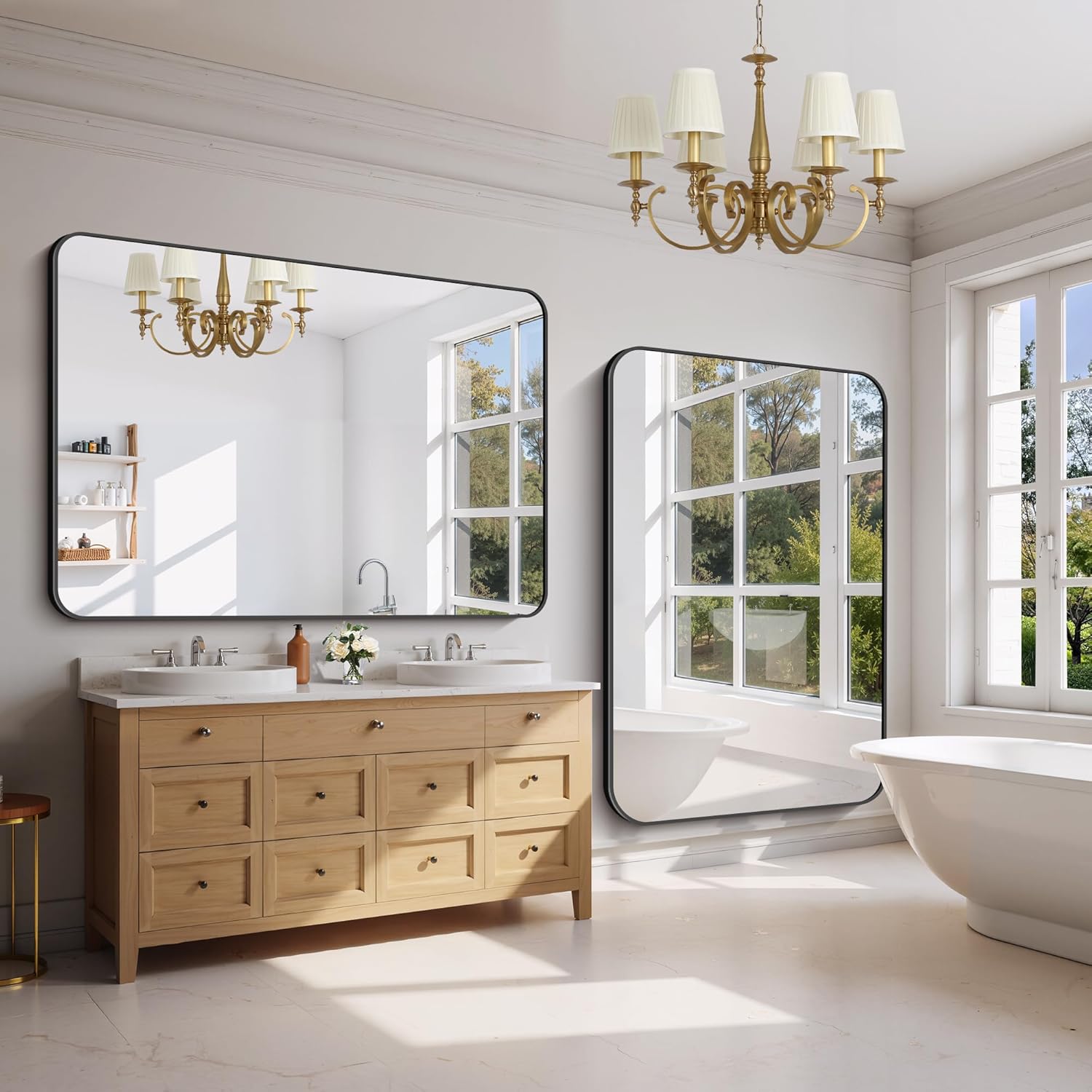 - Rounded Corner Design:The rounded corner rectangular mirror makes your bathroom more elegant and classy, which especially attracts your eyes. Ideal for decorative bathroom and make the space more brighter and more spacious.