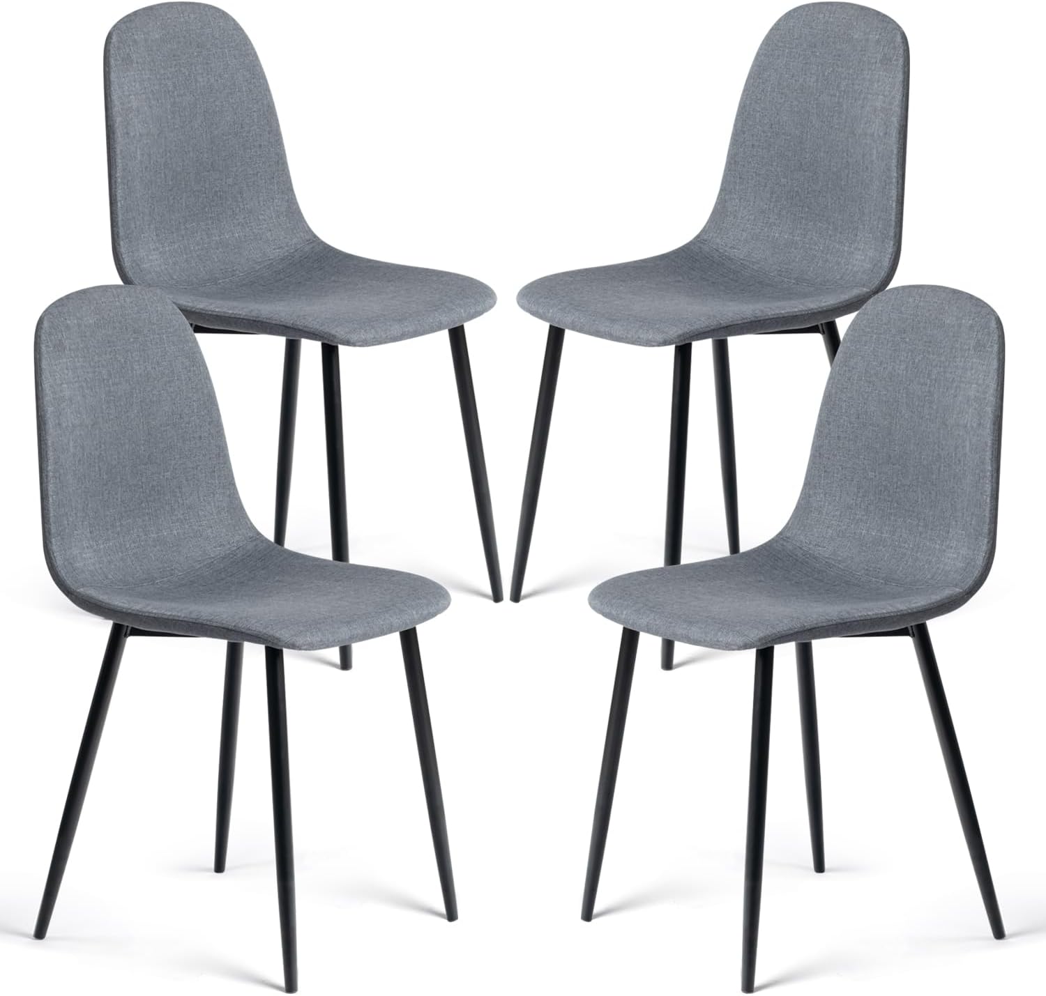 FurnitureR Dining Chairs Set of 4, Fabric Comfy Seat Armless Side Chairs with Metal Legs for Home Kitchen Dining Room Reception Room, Slubbed Grey