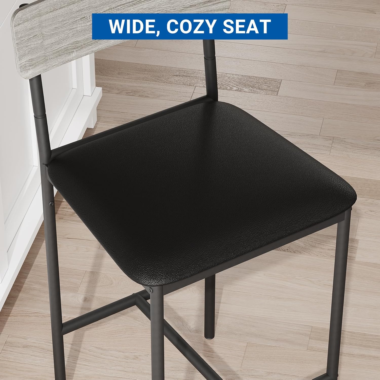GarveeHome Bar Stools Set of 2, Upholstered Height Bar Stools with Backrest and Footrest, Kitchen Barstools for Island,Counter Bar, Easy Assembly, Rustic Gray