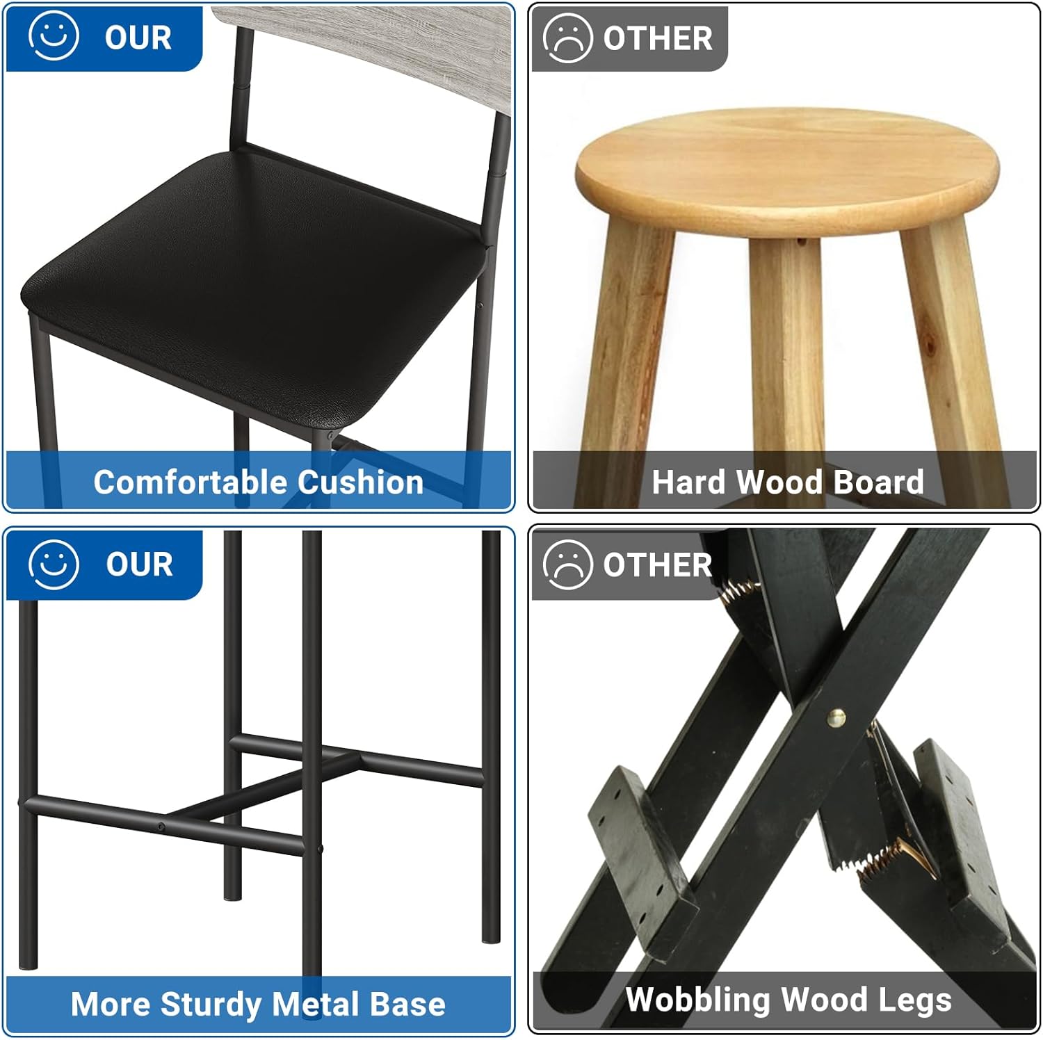 - REFINED BAR HEIGHT STOOLS: Crafted from premium MDF board and solid steel, these barstools boast a robust frame designed for enduring use. The upgraded seats are padded with thick, high-density sponge cushions, ensuring your comfort throughout your seating experience. They surpass the comfort level of traditional wooden bar stools.