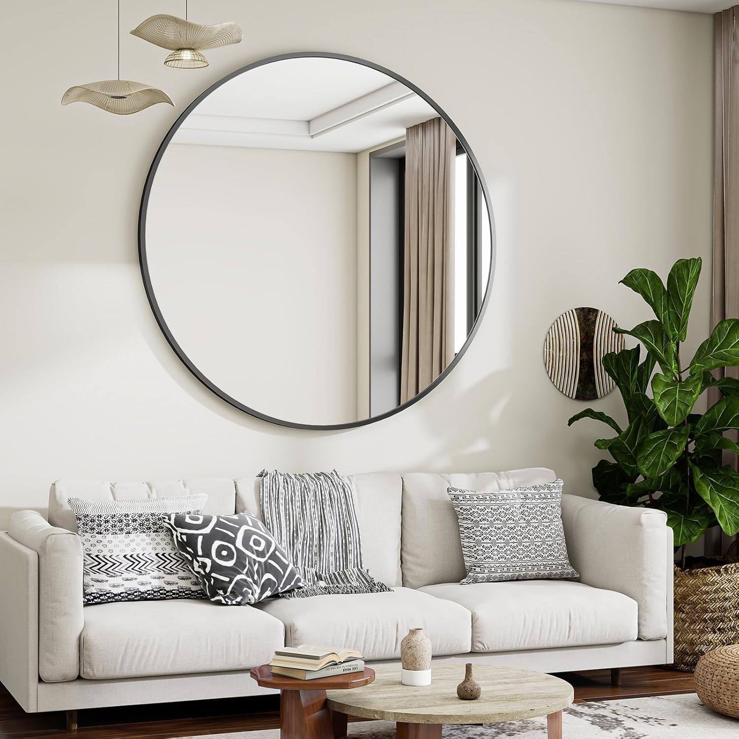- Wide Application: The more classic the design, the easier it is to use as decoration. This 42/48 inch circle mirror is suitable for modern, retro and minimalist room styles. Large wall mirror can be hung in the living room, bedroom, entryway, hallway, foyer as room decor