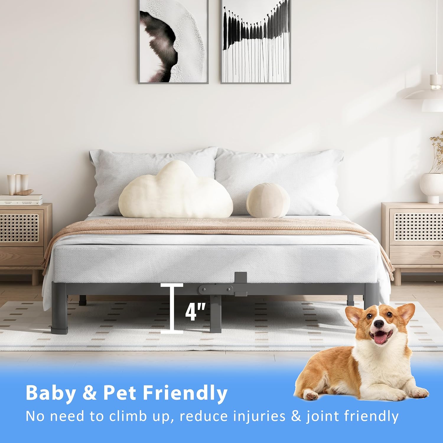 4 Inch Full Size Bed Frame, 3500Lbs Heavy Duty Metal Platform with Round Corner Legs Mattress Slide Stopper, Steel Slat Support No Box Spring Needed, Noise Free, Non-Slip, Easy Assembly