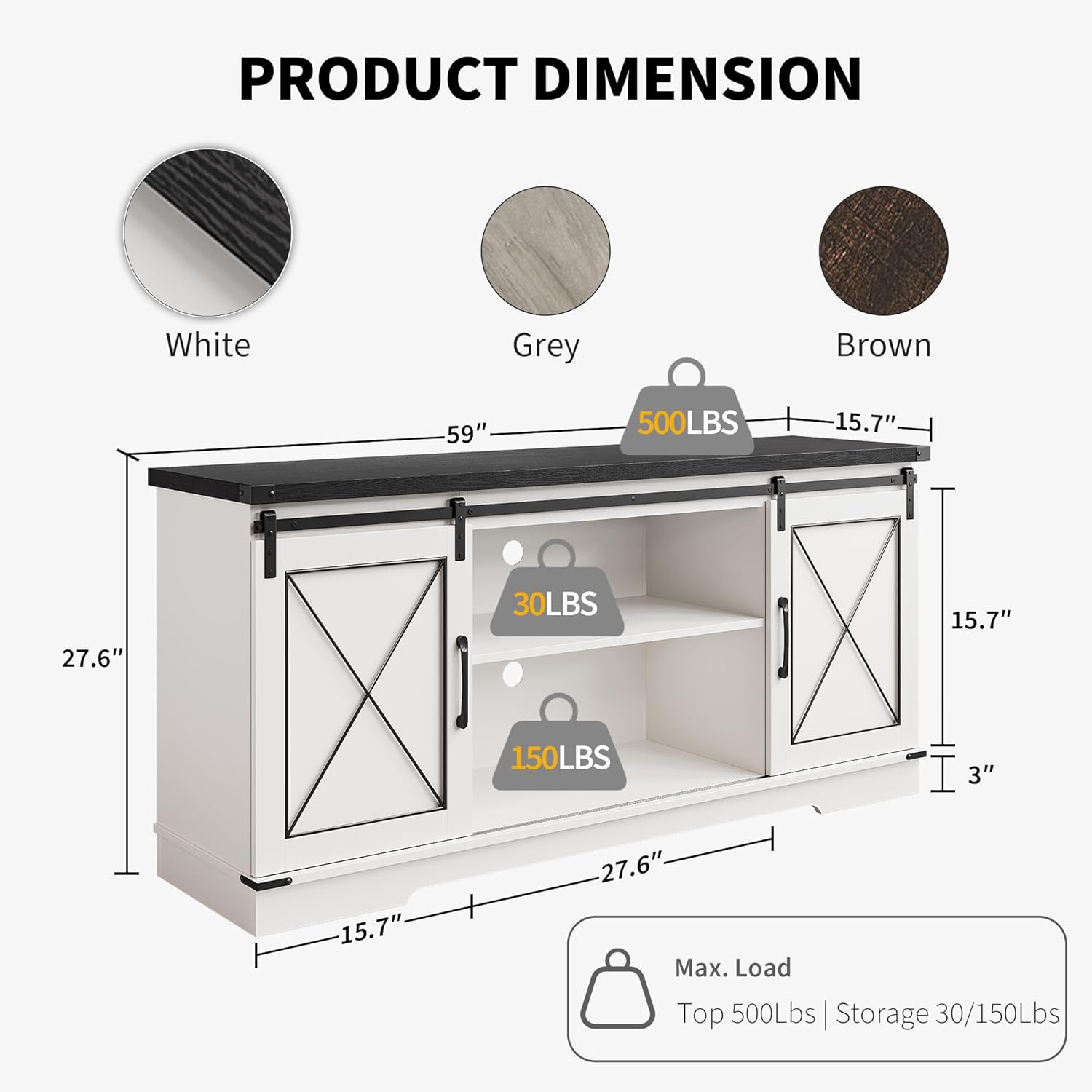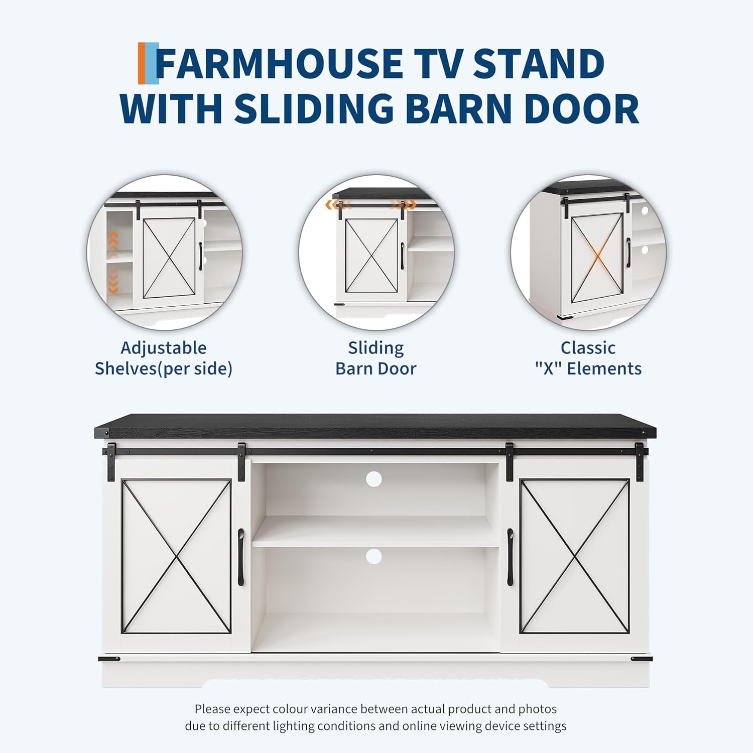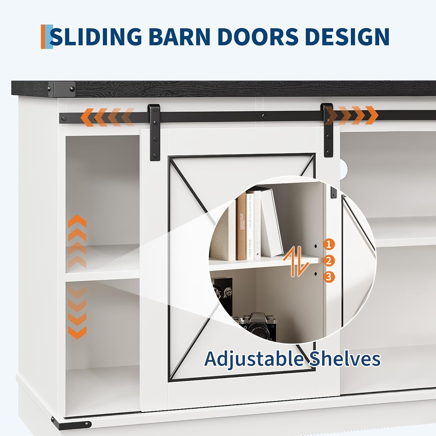 - Versatile farmhouse style TV stand: White TV stand features double sliding barn doors with classic "X" elements and a retro white finish, this TV stand for bedroom adds a natural