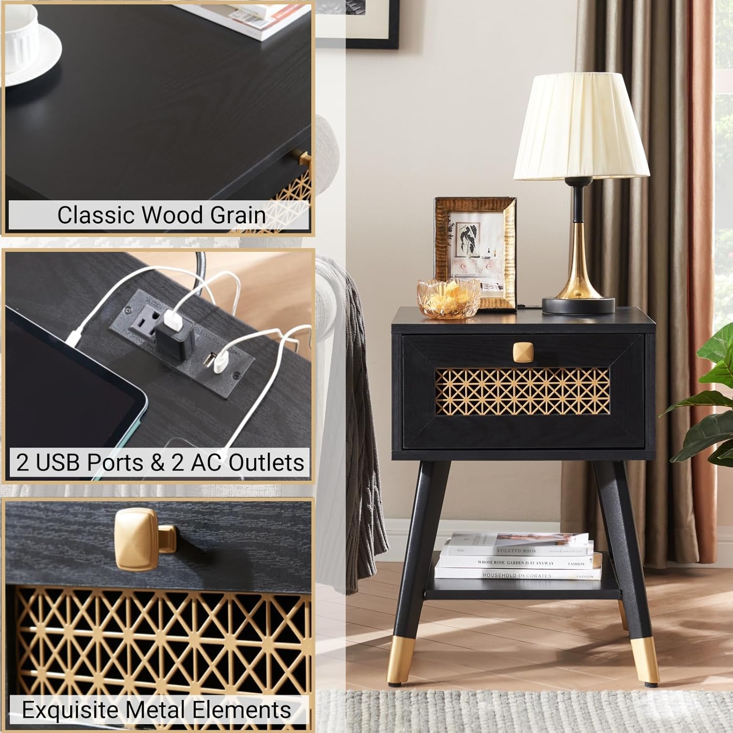 - Side Table with Charging Station: Low battery? Don't worry. This end table comes with two AC outlets and two USB ports for your charging needs. You can easily charge mobile phones, iPad, Mac and other devices as you need conveniently. No need to rush around looking for extra outlets