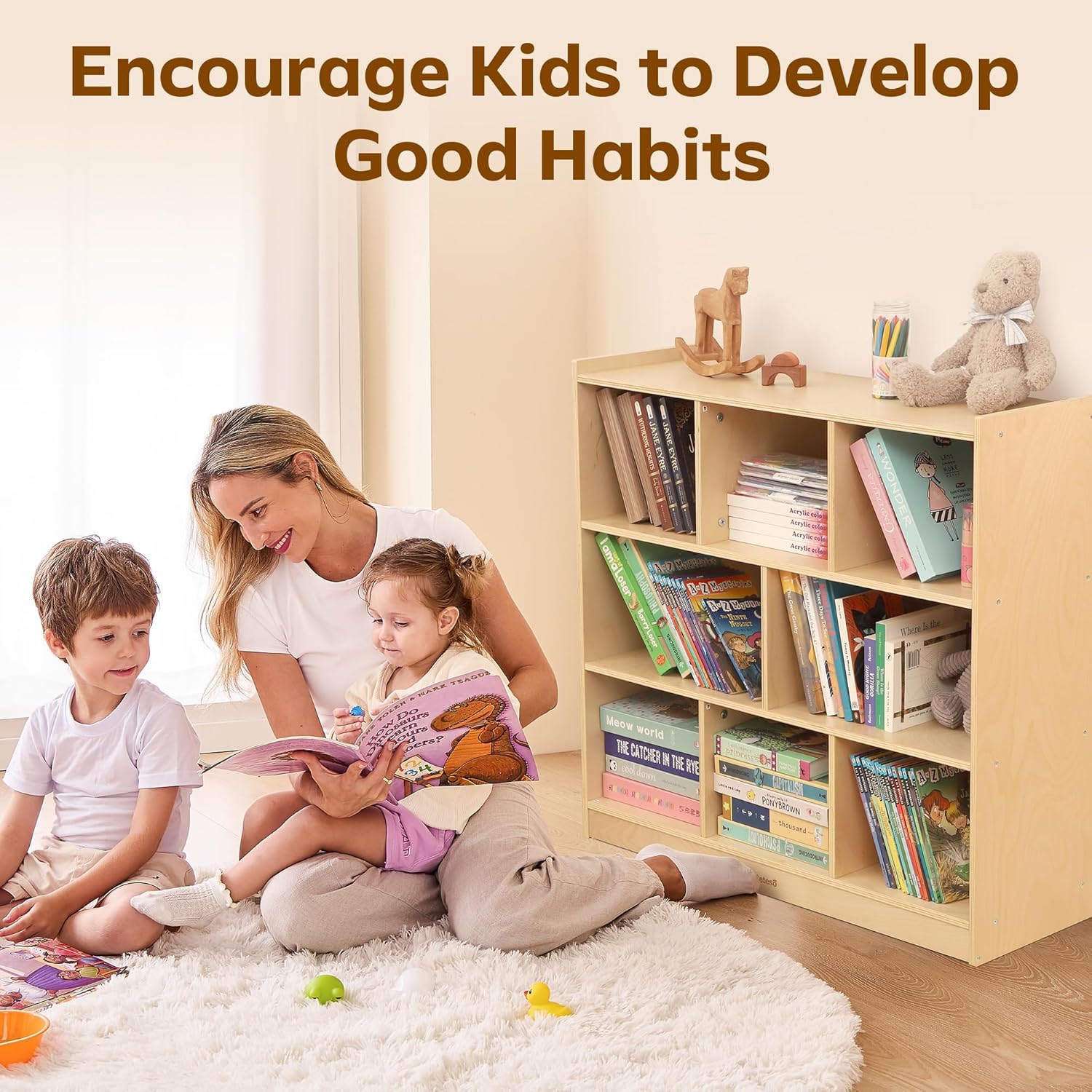 - KID-FRIENDLY DESIGN & DEVELOPING GOOD HABITS: Our wooden bookshelf is kid-friendly, with a perfect height that is suitable for babies to easily access. With the Montessori bookshelf, kids will learn to organize their room and items regularly and cultivate the ability to analyze and organize. Developing good habits of tidying is important for kids