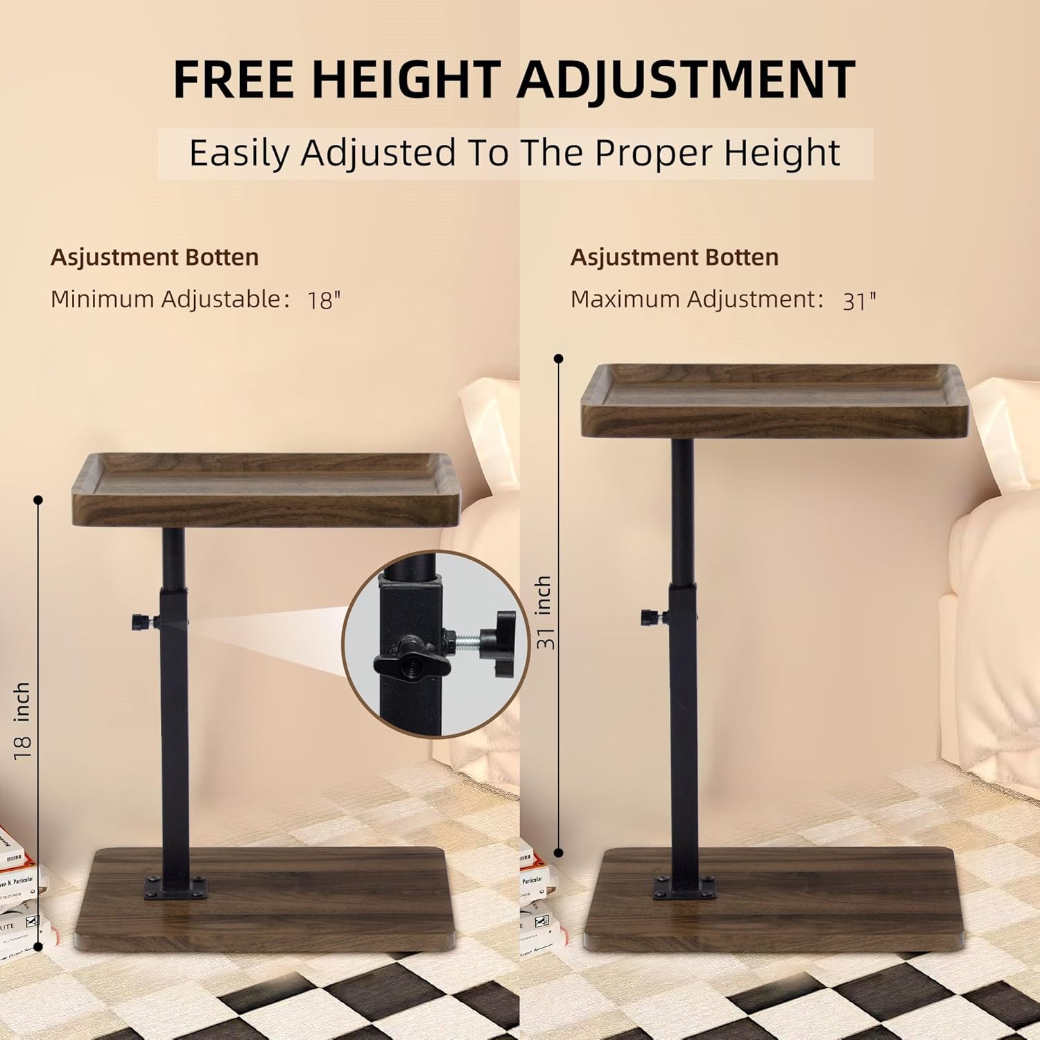 - Multi-functional C Table: This adjustable height sofa table can be used as a convenient food or drink table, couch table, tv table, night stand, snack table, bedside table, wine table, accent table, bathtub tray, or for other purposes, and also serve as a perfect room decoration. This small end tables is easy to adapt to the gaps between sofas or the narrow space next to the bed.