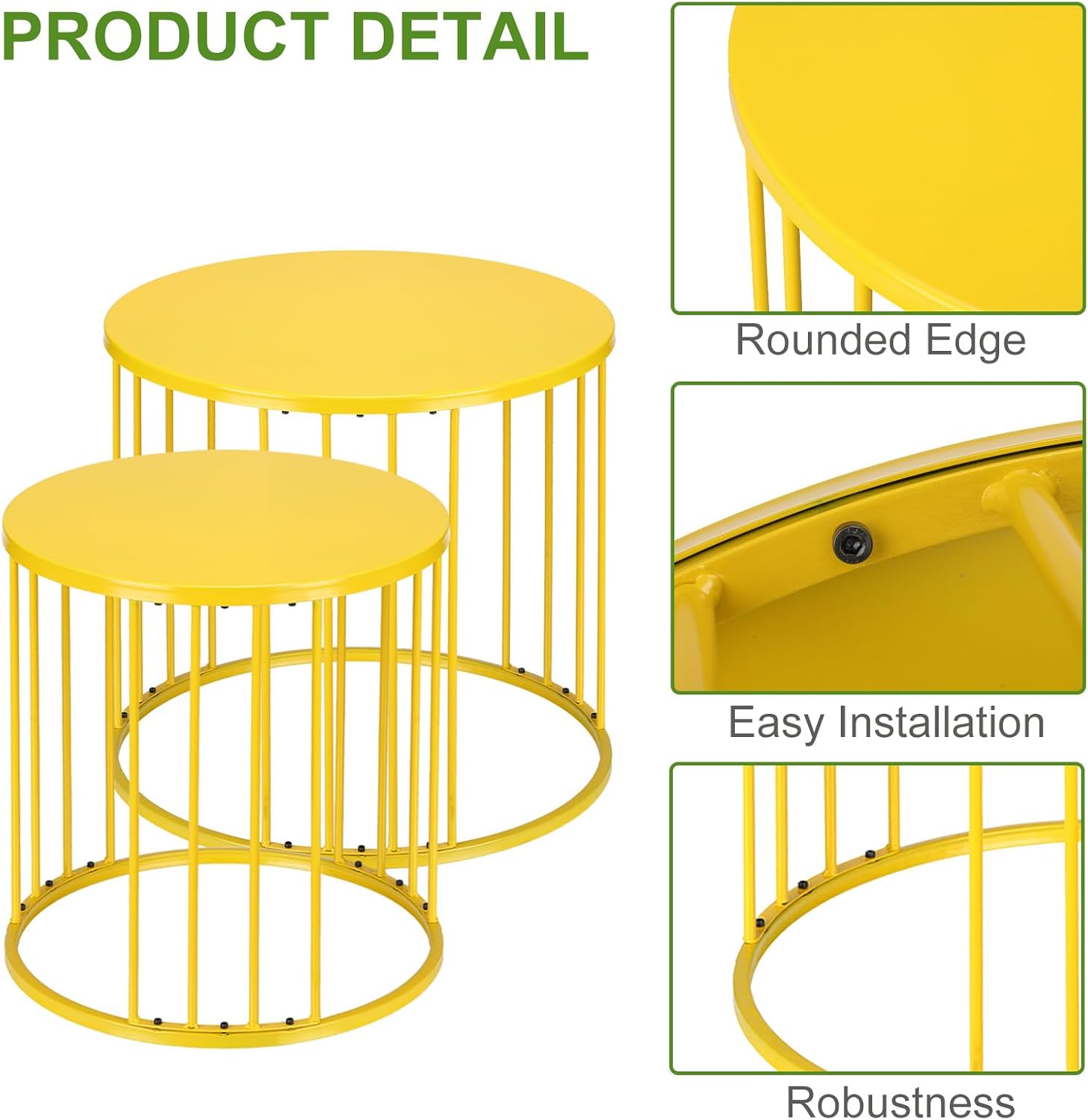 - Side Table: Upgrade your space with 2-piece round metal tables (19” and 17” tall). Perfect for outdoor, balcony, garden or indoor, this set combines style, practicality, and easy cleaning in a minimalist design