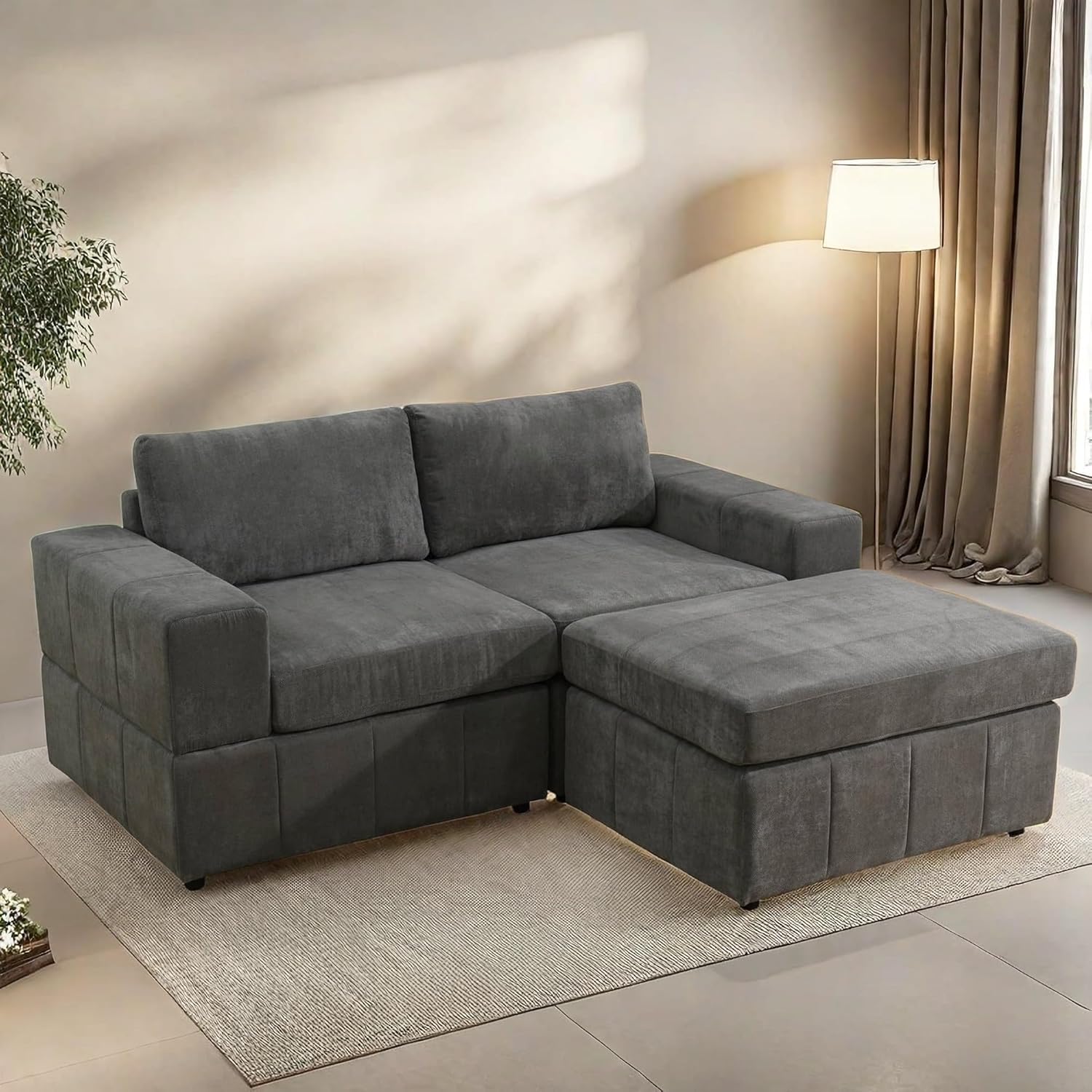 Loveseat Sofa with Ottoman, 74″ Modern Sectional Couches with Deep Seat, Small L Shaped Couch with Chaise for Living Room Bedroom, Brown
