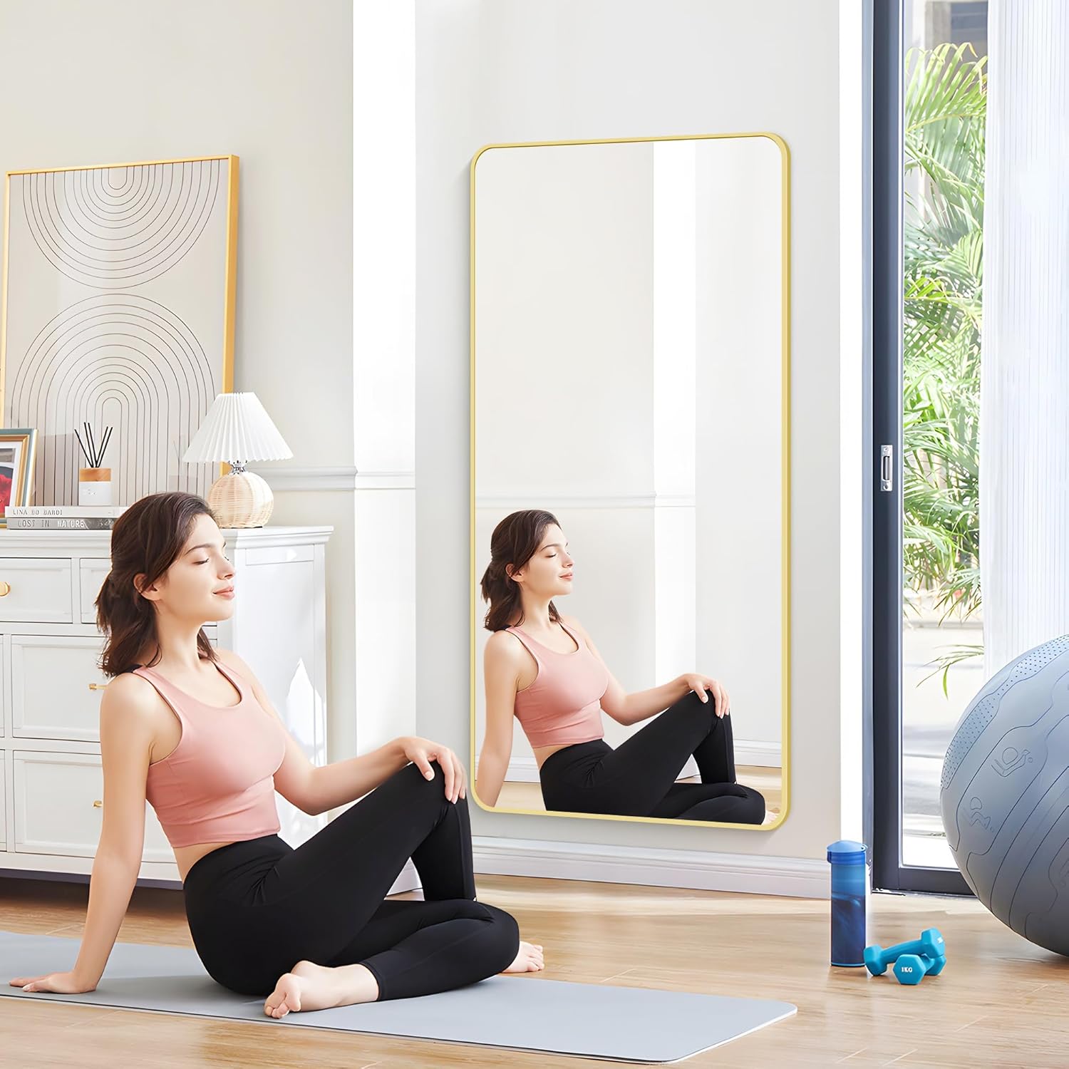 30"x60" Gold Bathroom Mirror, Large Rectangle Mirror, Rectangular Wall Mirror, Rounded Corner Vanity Mirror with Aluminum Metal Frame for Bathroom Bedroom Living Room