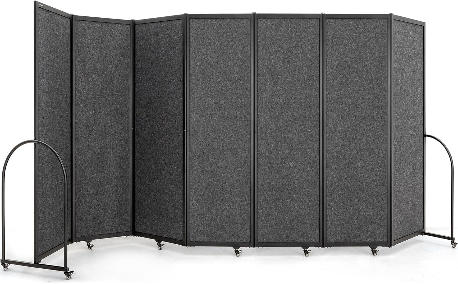 Folding Room Partition,Privacy Room Screen with Arms,Office Dividers Partition Wall,14'3"L* 6'7"H,Dark Grey