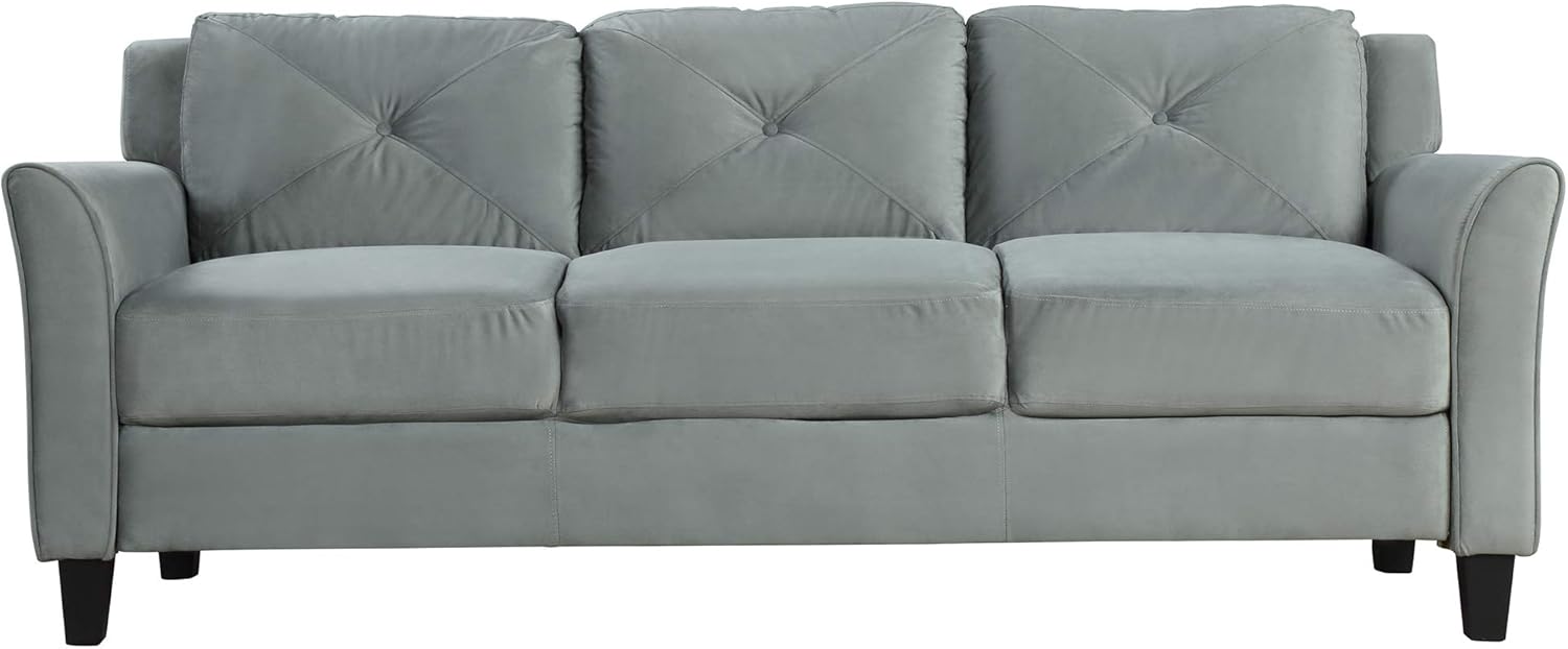 - Each rounded back cushion features diamond button tufted accents for a traditional polished appearance