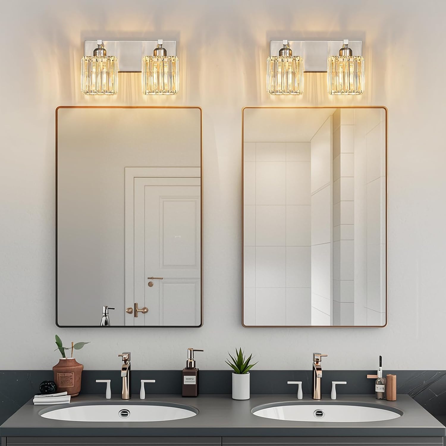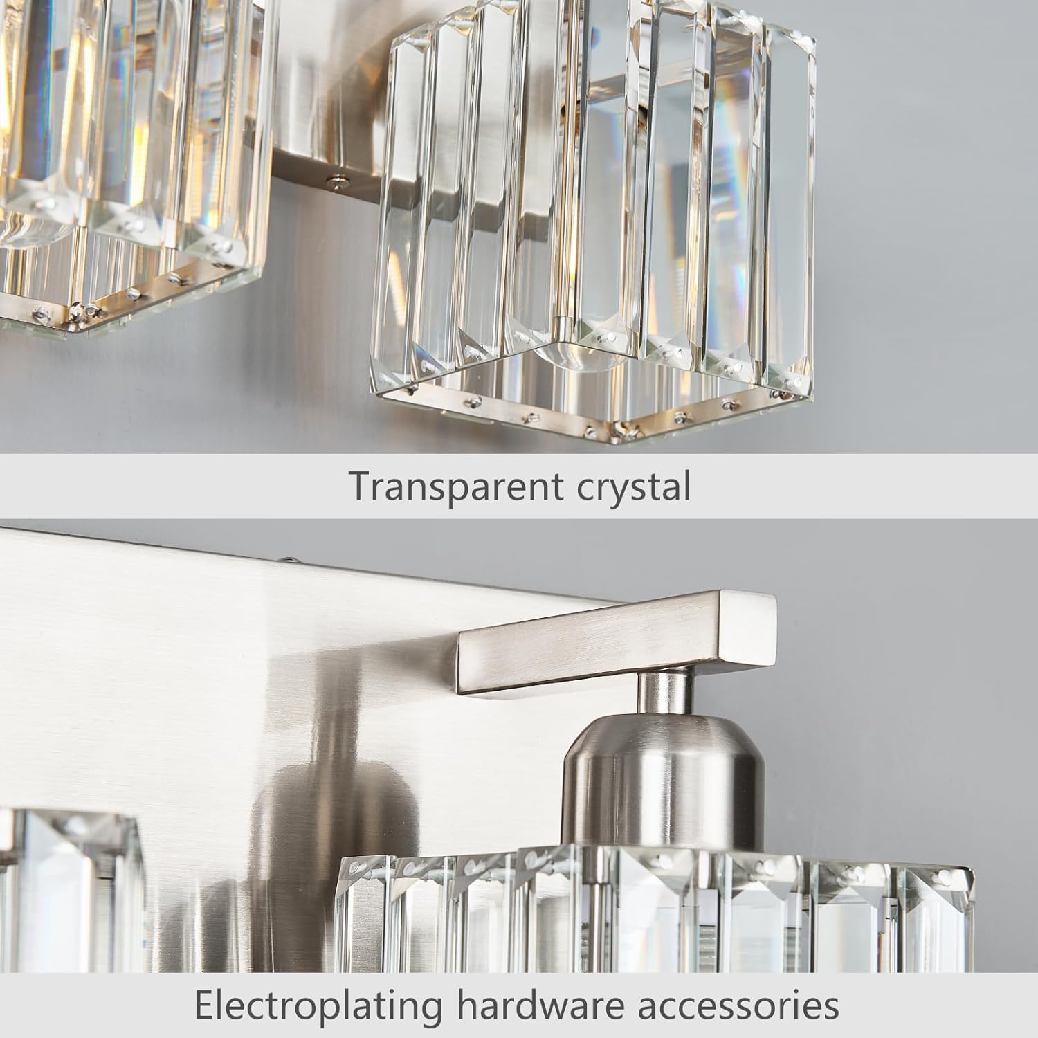 - [High quality manufacturing] Bathroom lights shade is made of clear K9 crystal, base and arm are made of metal, corrosion and moisture resistant, sturdy and durable. Can create a beautiful lighting effect, bathroom vanity lighting simple and luxurious design shows your taste