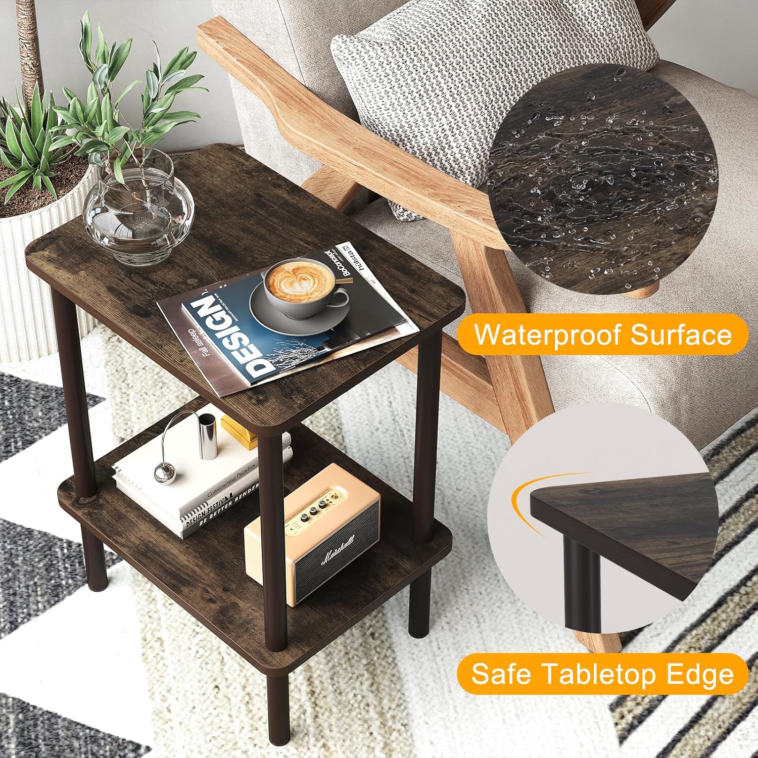 - 【2 TIER VERSATILE END TABLE】-This 2 tier small side table can storage many essentials, and can be matched with various home decoration styles. You can put it in the living room, bedroom, balcony study room, nursery room or outdoor for placing books, coffee, alarm clock, potted plants, toys, etc.