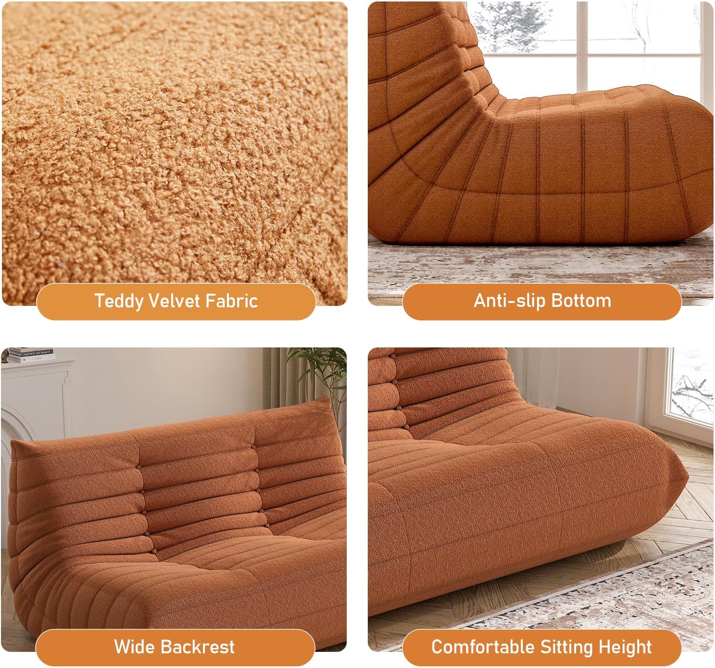- 【Premium Fabric】- Our bean bag chair loveseat is made from high-quality teddy velvet fabric, providing a soft, luxurious feel while ensuring excellent breathability. This fireside chair fabric is not only skin-friendly, durable but also easy to clean, keeping your bean bag looking fresh.