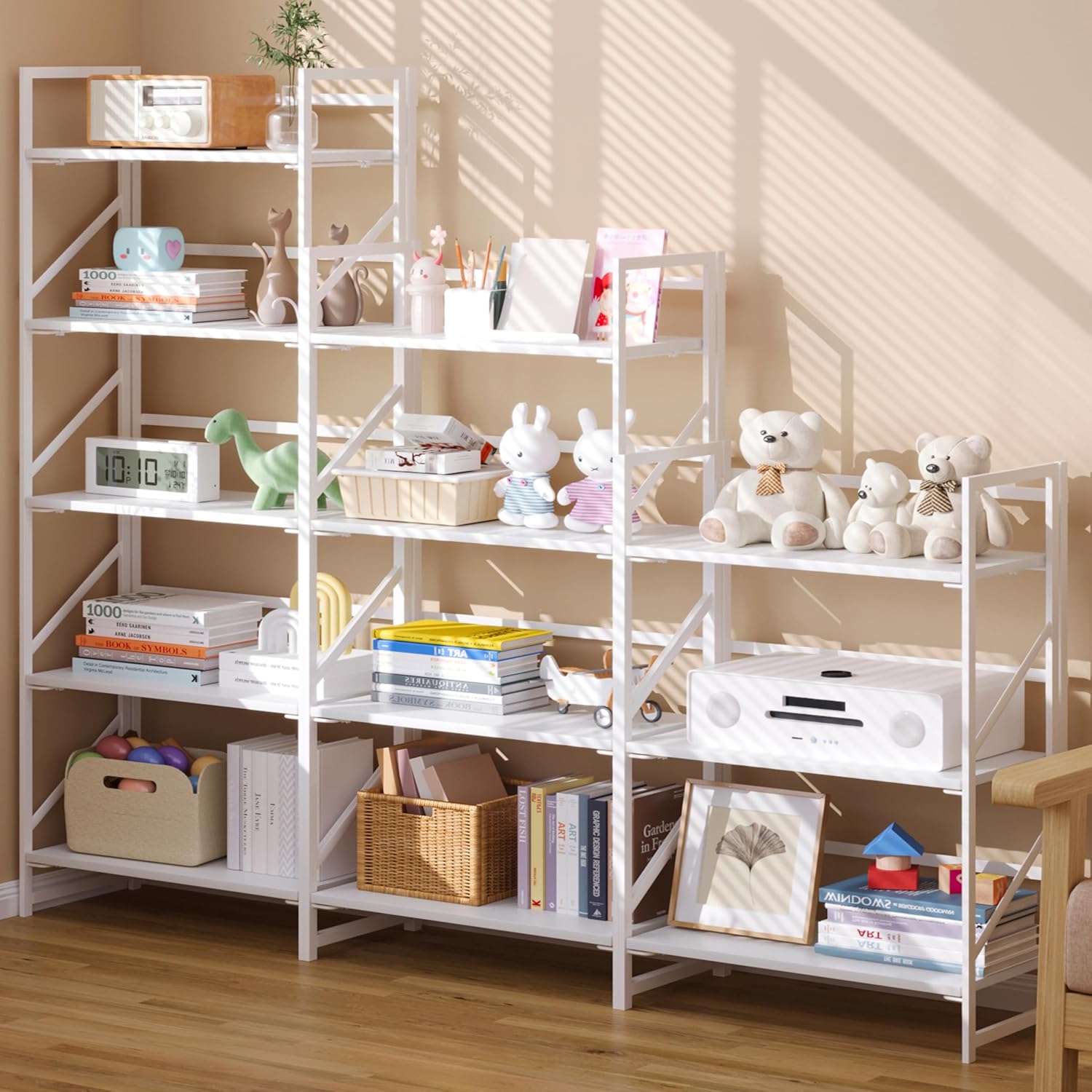 - This tier small bookshelf is an ideal choice for adding storage space in any room of your home. The bookshelf features tiers of open shelves that offer plenty of space to display your favorite books, plants, picture frames and other home decor items. The bookshelf is constructed from high-quality MDF and particle board for long-lasting durability and stability. It also includes anti-toppling fittings for added safety. This bookshelf is easy to assemble with the necessary hardware and instructions included.
