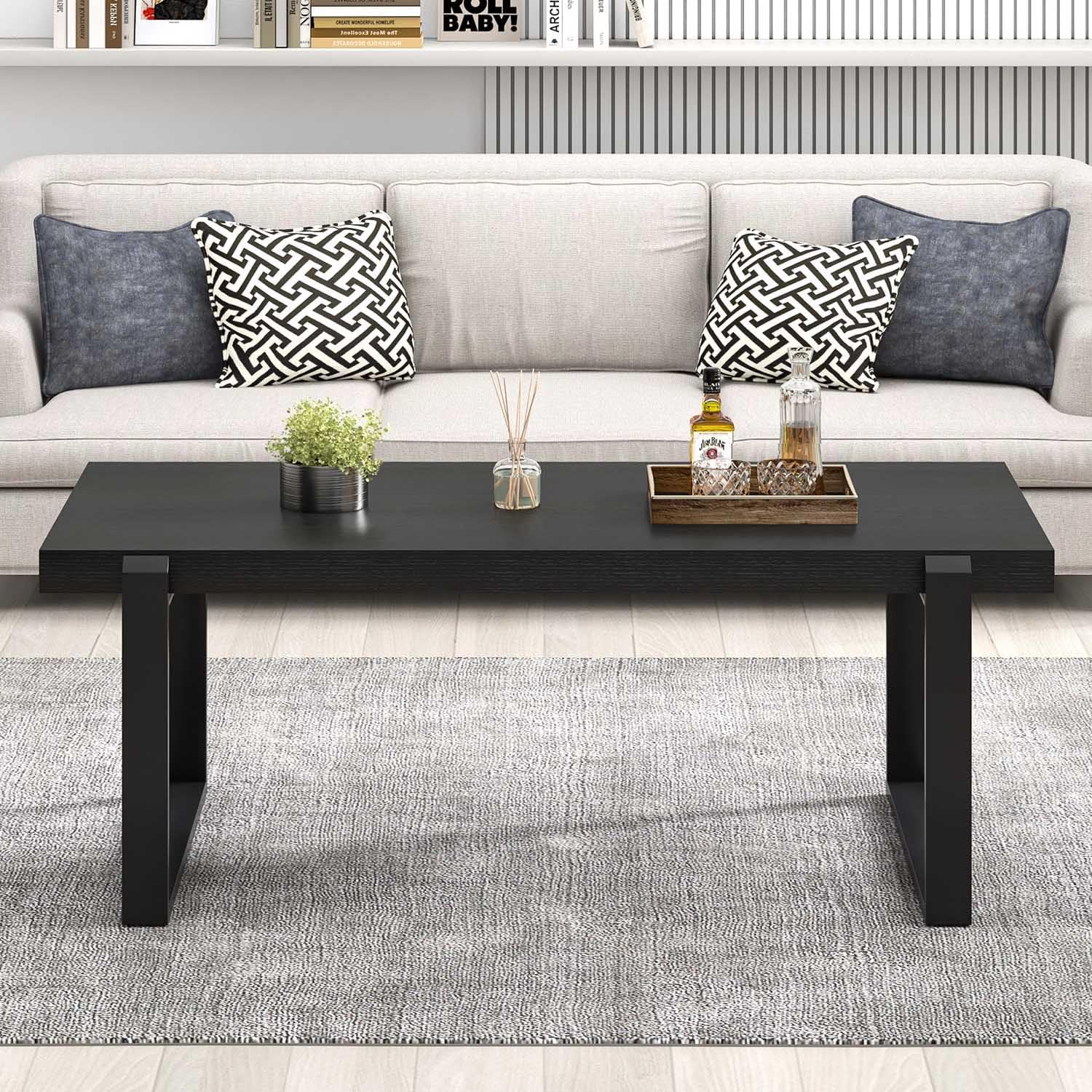 - Sturdy Build: Made with a durable MDF tabletop and sturdy metal legs, this black coffee table supports up to 300 lbs. The stable structure ensures reliable use, while its open design offers legroom and makes it a great addition to any living spaces