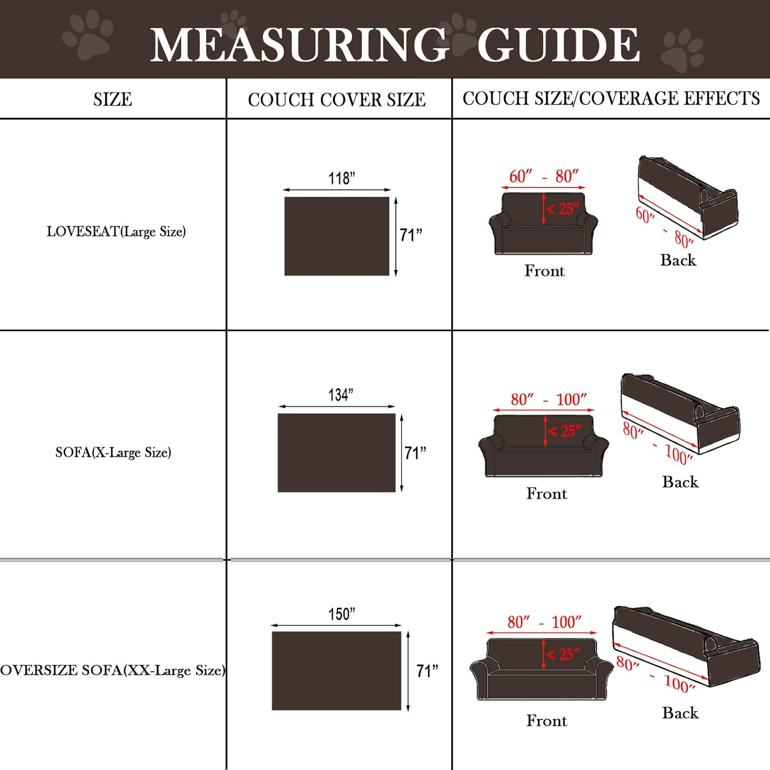 - HOW TO CHOOSE: Please measure your furniture before you buy. We recommend Large Size 71"x 118 " for loveseat; X-Large Size 71" x 134" for sofas; XX-Large Size 71" x 150" for oversize sofas; Suitable for most couch, Provide perfect coverage for the sofa (including armrests)