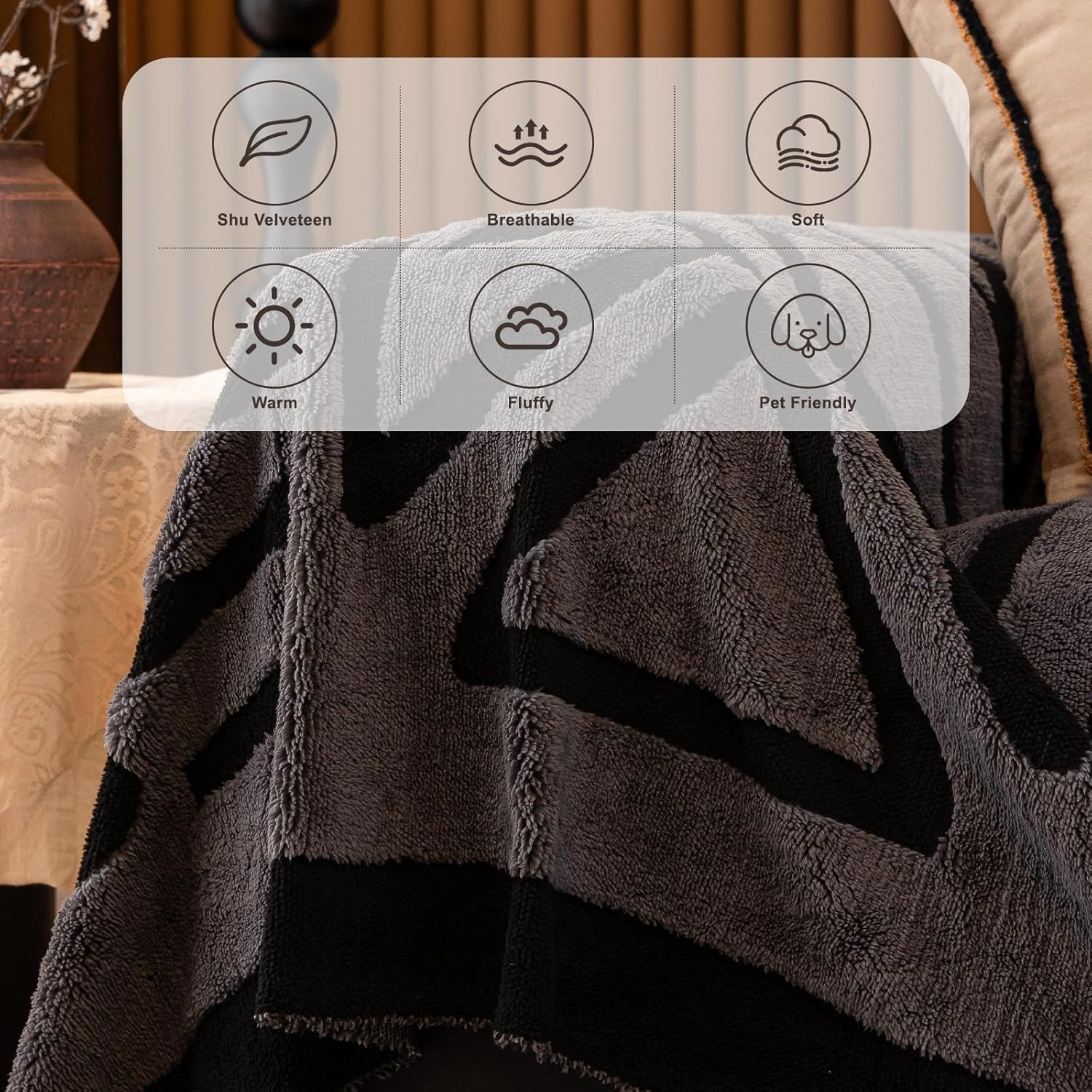 HANDONTIME Dark Grey Sofa Cushion Covers Boho Couch Sofa Covers Short Plush Couch Cover for Sofa Shu Velveteen Couch Sofa Slipcover for Pets Black Geometric Sofa Cover Washable Warm Soft, 71" X134"