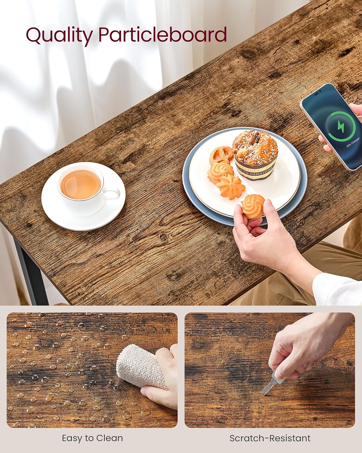 VASAGLE Bar Table, Narrow Long Kitchen Dining Table with Charging Station, Sturdy Metal Frame, Industrial, 15.7 x 47.2 x 35.4 Inches, Rustic Brown and Ink Black ULBT121K01