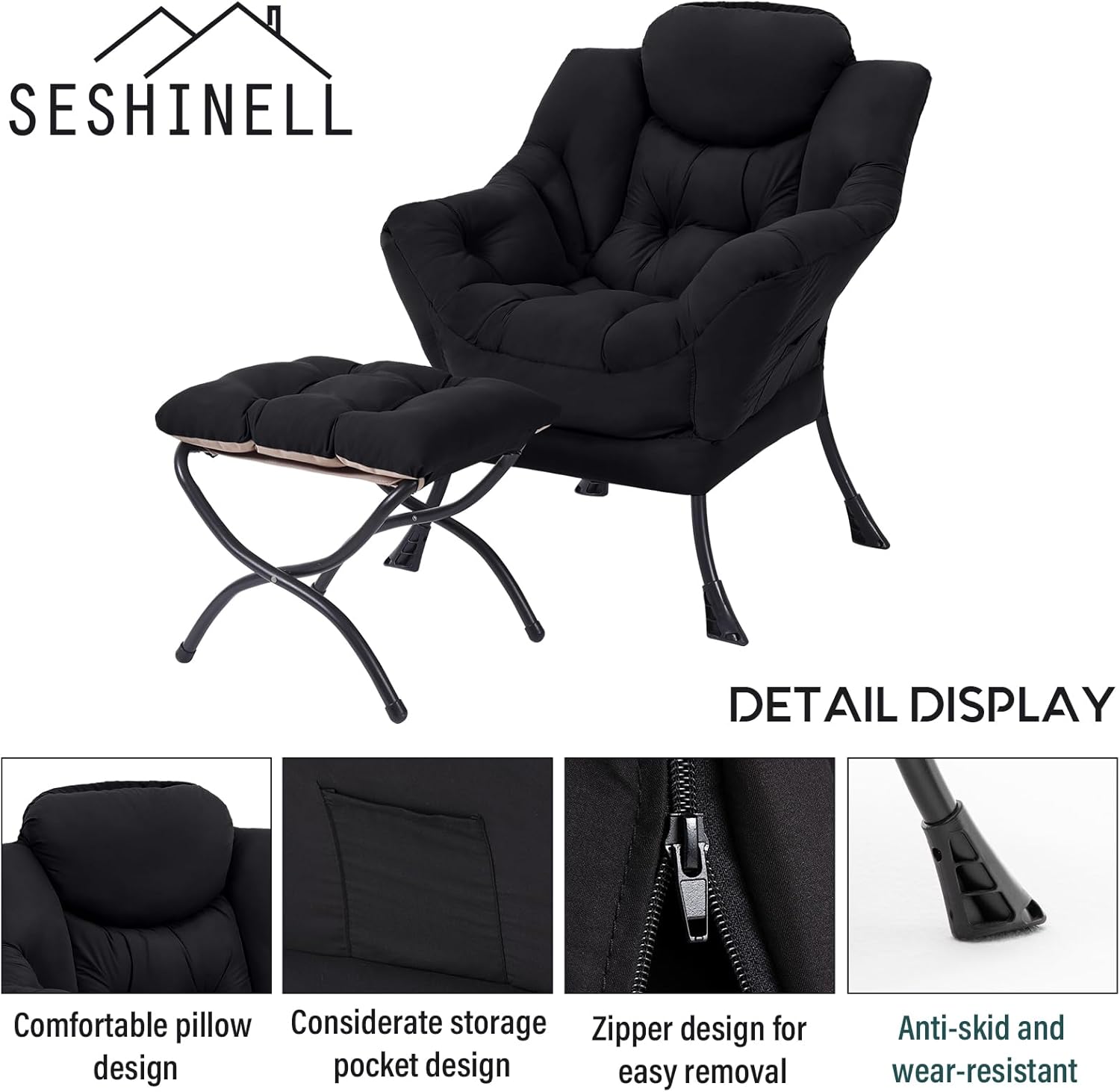 - LAZY CHAIR WITH OTTOMAN: The comfy lazy chair comes with a versatile folding footstool. You can also put the footstool next to the sofa and coffee table in the living room as a footstool to relax your feet, or even put it in the hallway or doorway and sit on a small stool to change your shoes.