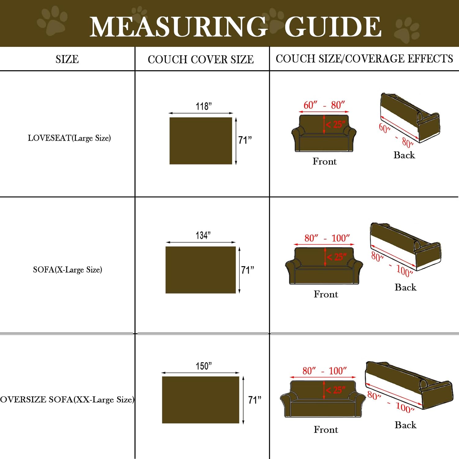 - HOW TO CHOOSE: Please measure your furniture before you buy. We recommend Large Size 71"x 118 " for loveseat; X-Large Size 71" x 134" for sofas; XX-Large Size 71" x 150" for oversize sofas; Suitable for most couch, Provide perfect coverage for the sofa (including armrests)