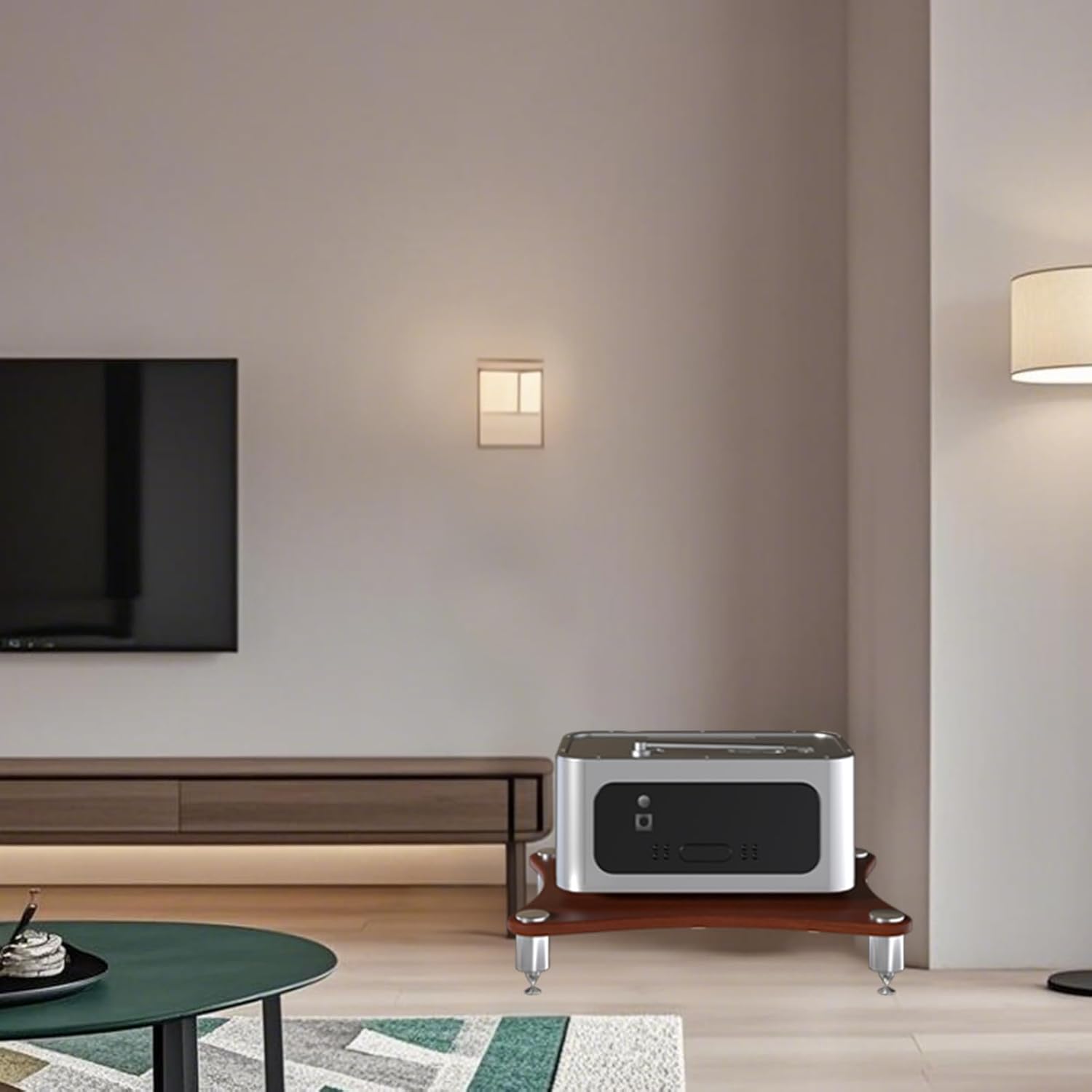 - Multi-purpose Entertainment Stand: You can use the 1-Tier AV media stand as a home storage shelf for audiovisual equipment,DVD players, game consoles, Blu-ray players, PS4, cable boxes, TV accessories, sound bars, plants, books, toys, etc, and in addition to storing audio equipment in the cinema, it can also be used as a printer shelf in the office