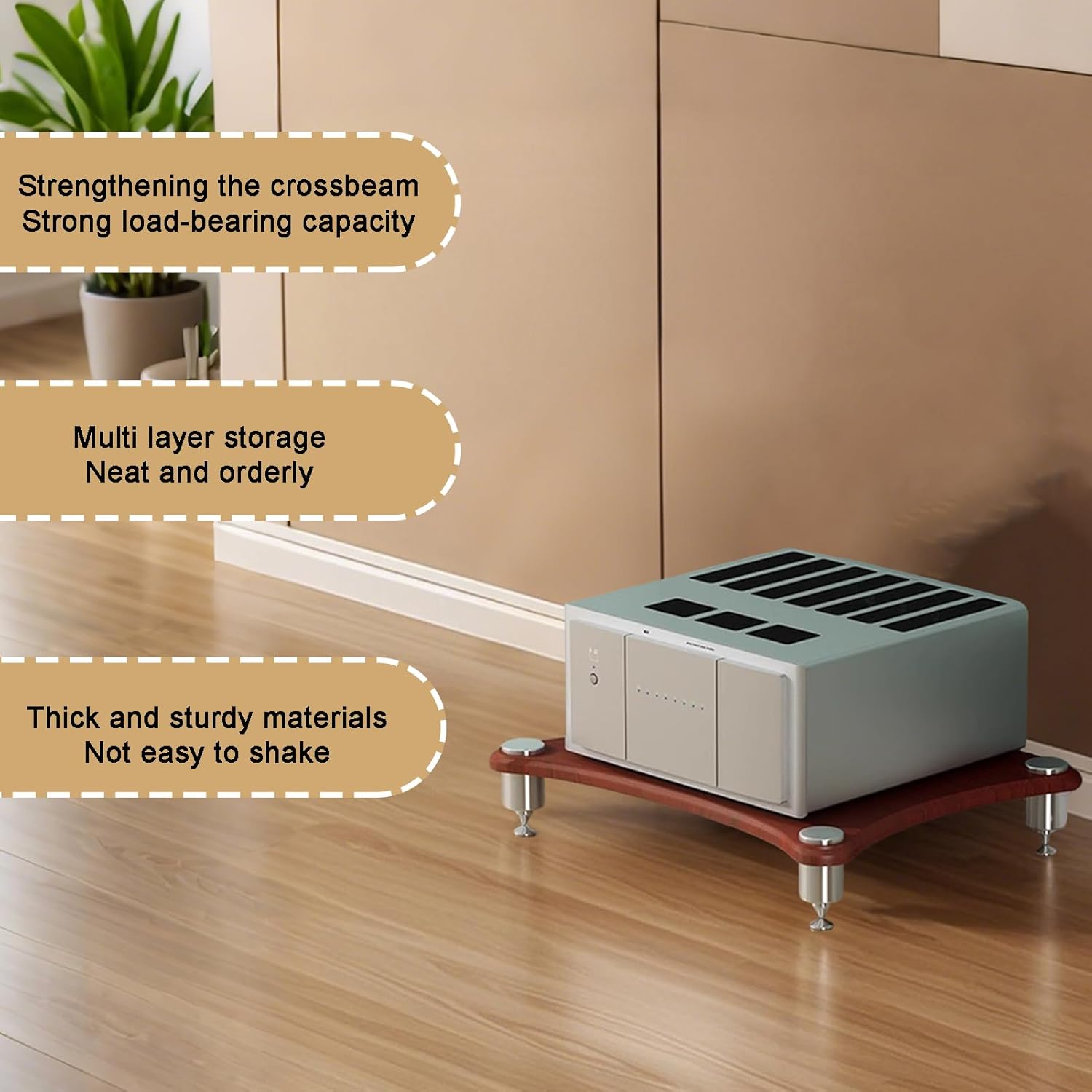 - Multi-Function Stereo Cabinet Audio Rack: This shelf for record player is perfect for corners or remaining space. Except place this in a theater room to store your stereo component you can also use it as a printer stand for my office. What's more, you can use 1-Tier AV media stand as a TV stand in a small bedroom