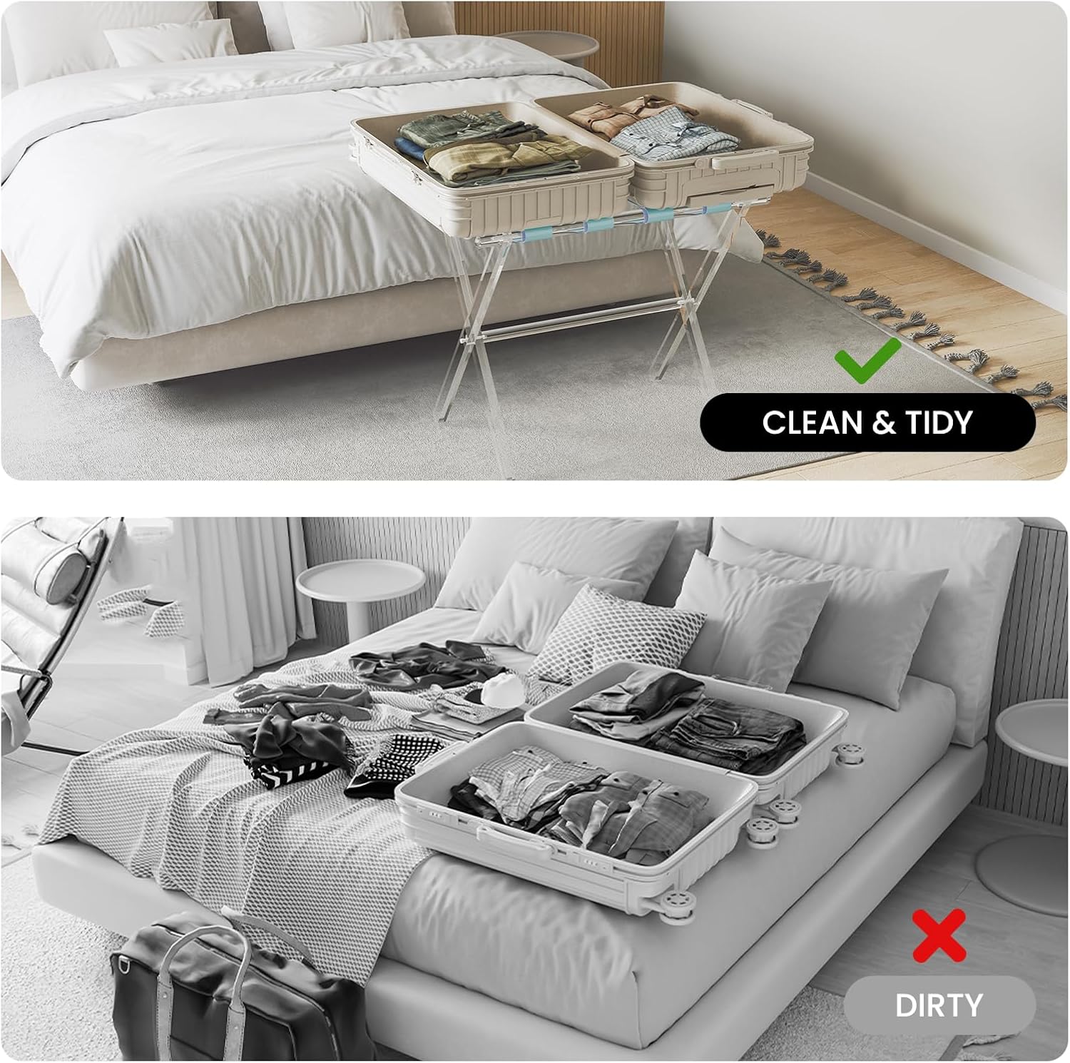 - 【LUXURIOUS ACRYLIC CRAFTSMANSHIP LUGGAGE RACK】 - Crafted from unique and transparent acrylic material, this luggage rack adds a touch of luxury to any setting, ideal for elevating the style of hotels and B & B accommodations.