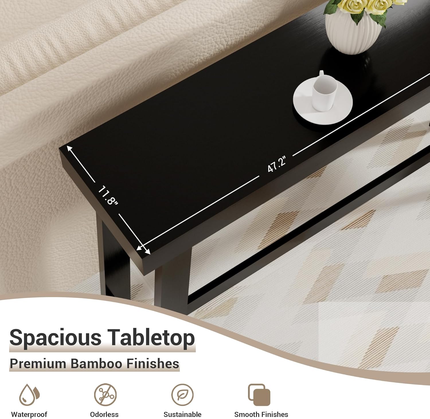 Bamboo Wood Entryway Table 47.2" Console Table, Narrow Sofa Table with Support Beam for Entrance, Hallway, Living Room, Bedroom, Foyer(Black)
