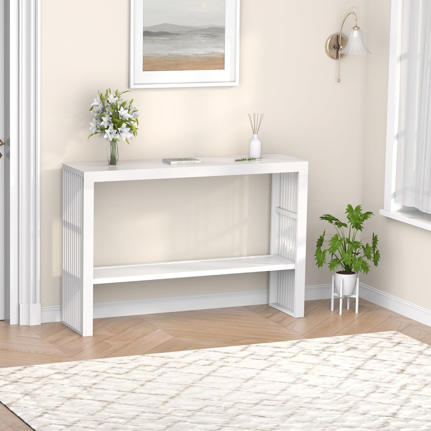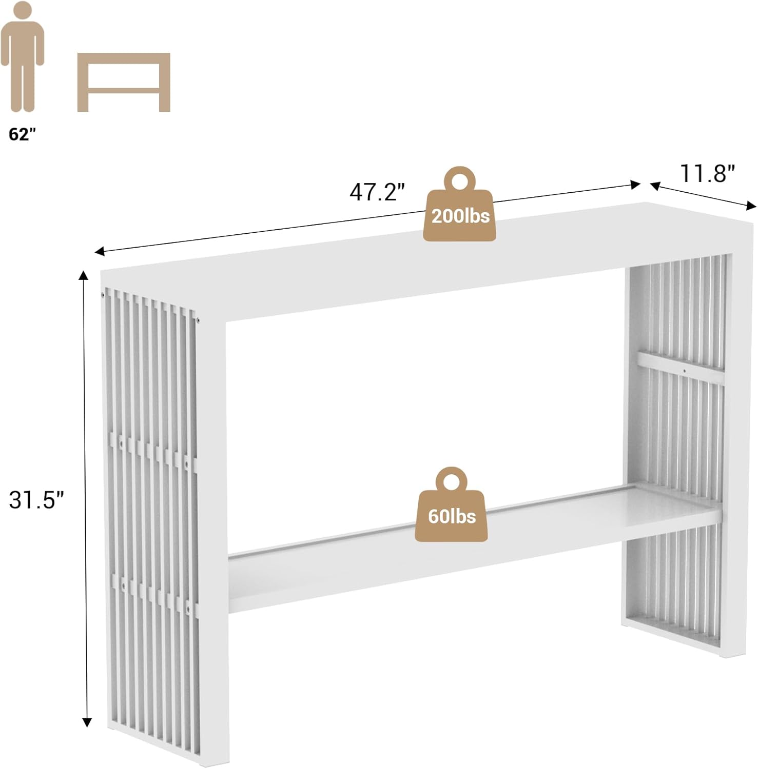 - 2-TIER ENTRYWAY TABLE: Featuring simple, smooth finishes and a 47.2 x 11.8-inch tabletop storage area, couch table behind sofa can easily hold home supplies such as keys, magazines, a hallway lamp, and more. Feel free to adjust the height of the lower shelf as needed.